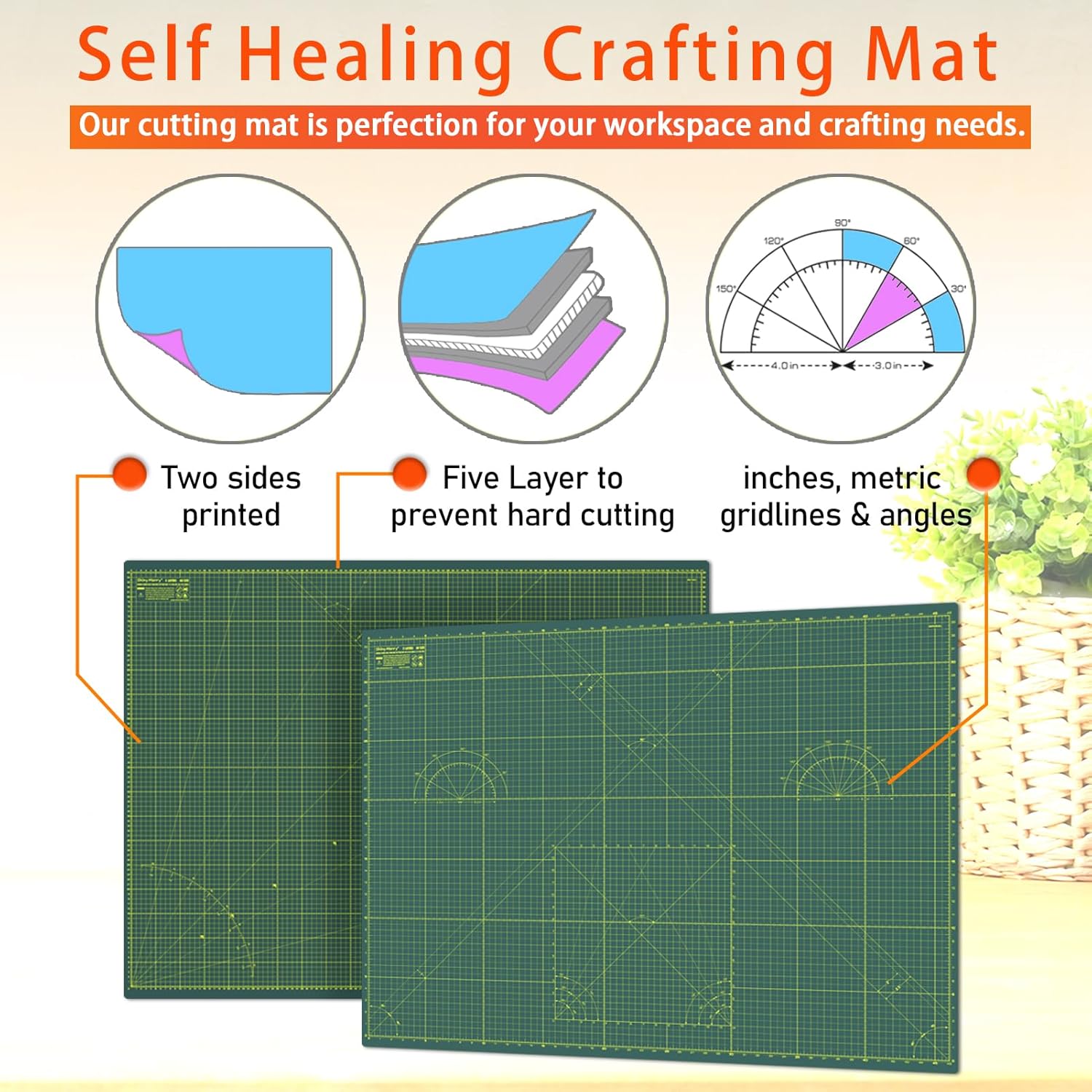 - 【Versatility for All Projects】This double sided self healing cutting mat is ideal for sewing, quilting, patchwork, leatherwork, paper crafts, model making, DIY projects, and more. It can also serve as a protective workbench mat, student table mat, or office desk mat. Suitable for both professionals and hobbyists.