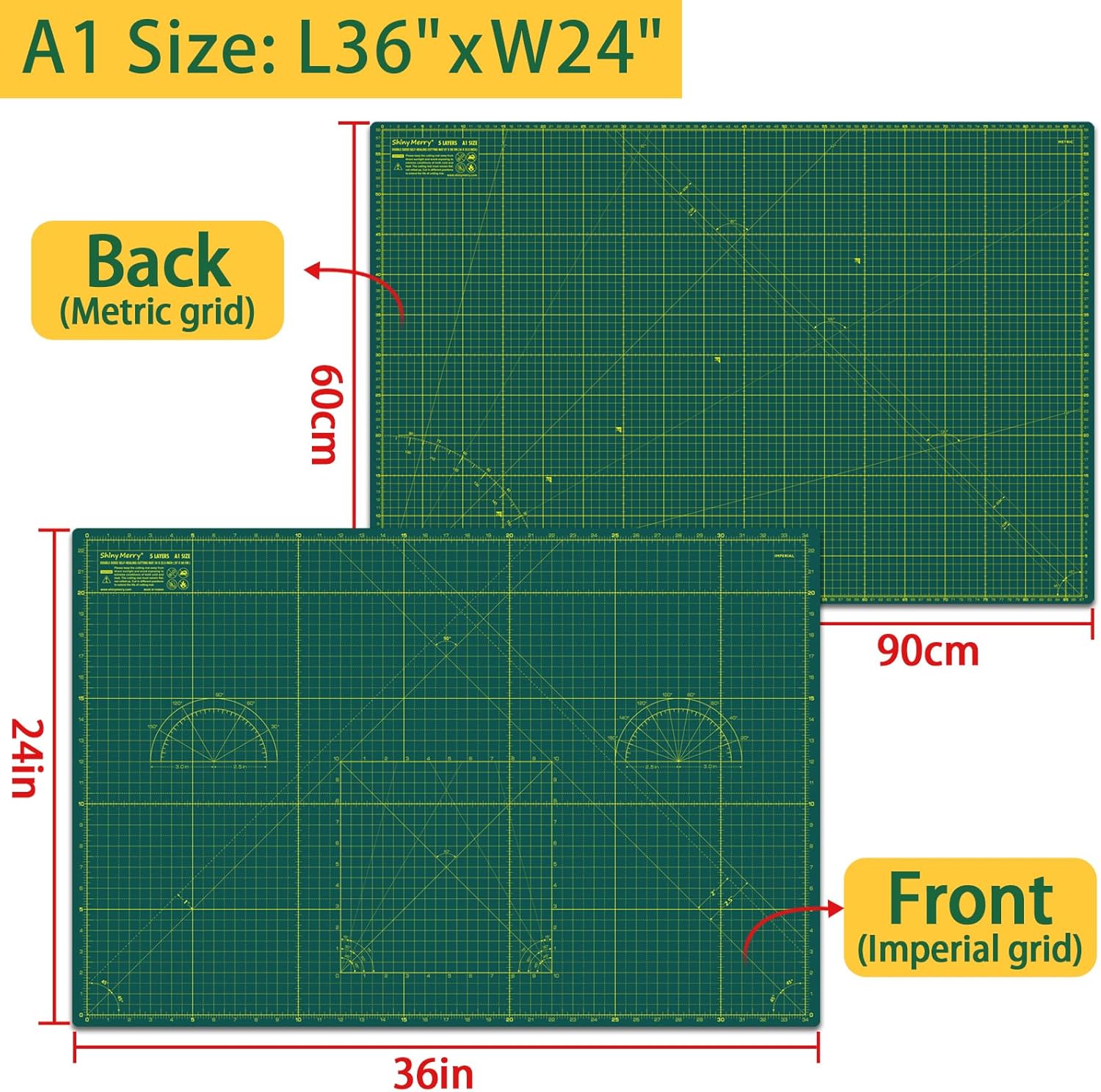 - 【Size Options】Shiny Merry self healing cutting mats are available in multiple sizes: A3 (30 x 45 cm), A2 (45 x 60 cm), A1 (60 x 90 cm), and A0 (90 x 120 cm). Choose the size that best fits your workspace and project needs.
