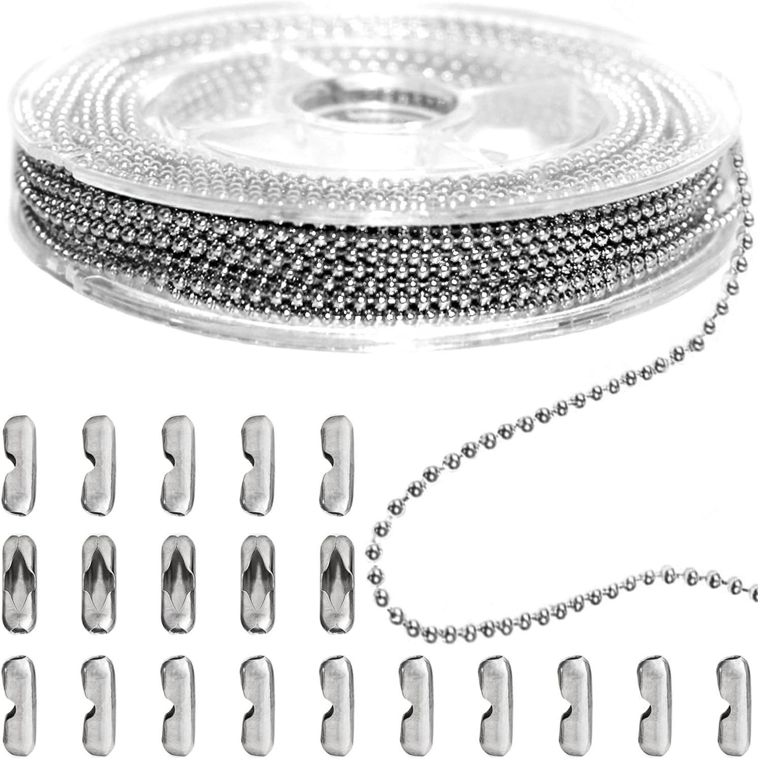 - 33 FEET ROLL SET: 33ft (10m) silver stainless steel ball chain in a spool with 20 pack silver stainless steel ball chain connectors.