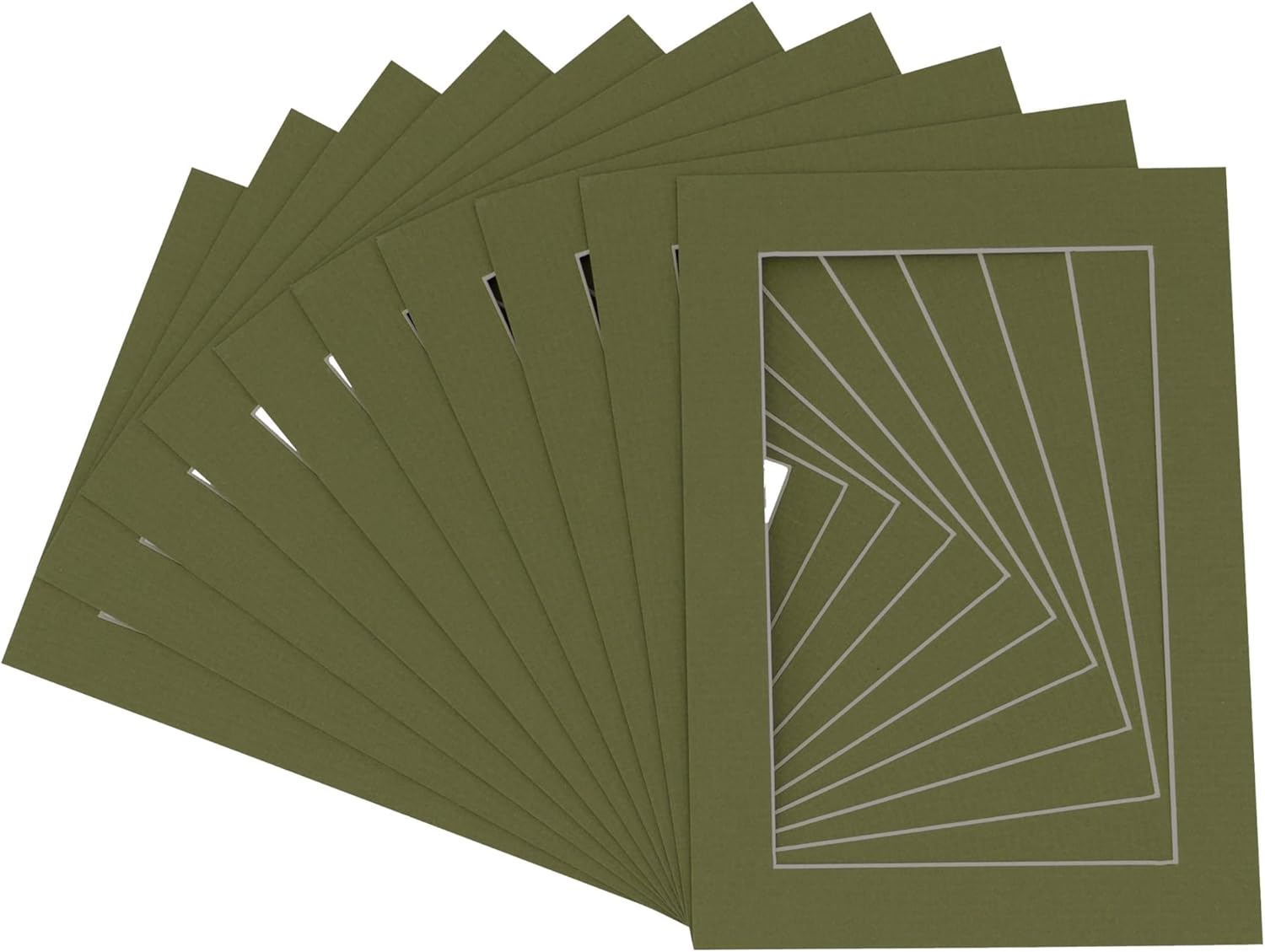 8x10 Mat for 6x8 Photo - Precut Dill Green Picture Matboard for Frames Measuring 8 x 10 Inches - Bevel Cut Matte to Display Art Measuring 6 x 8 Inches - Acid Free Pack of Ten MATS