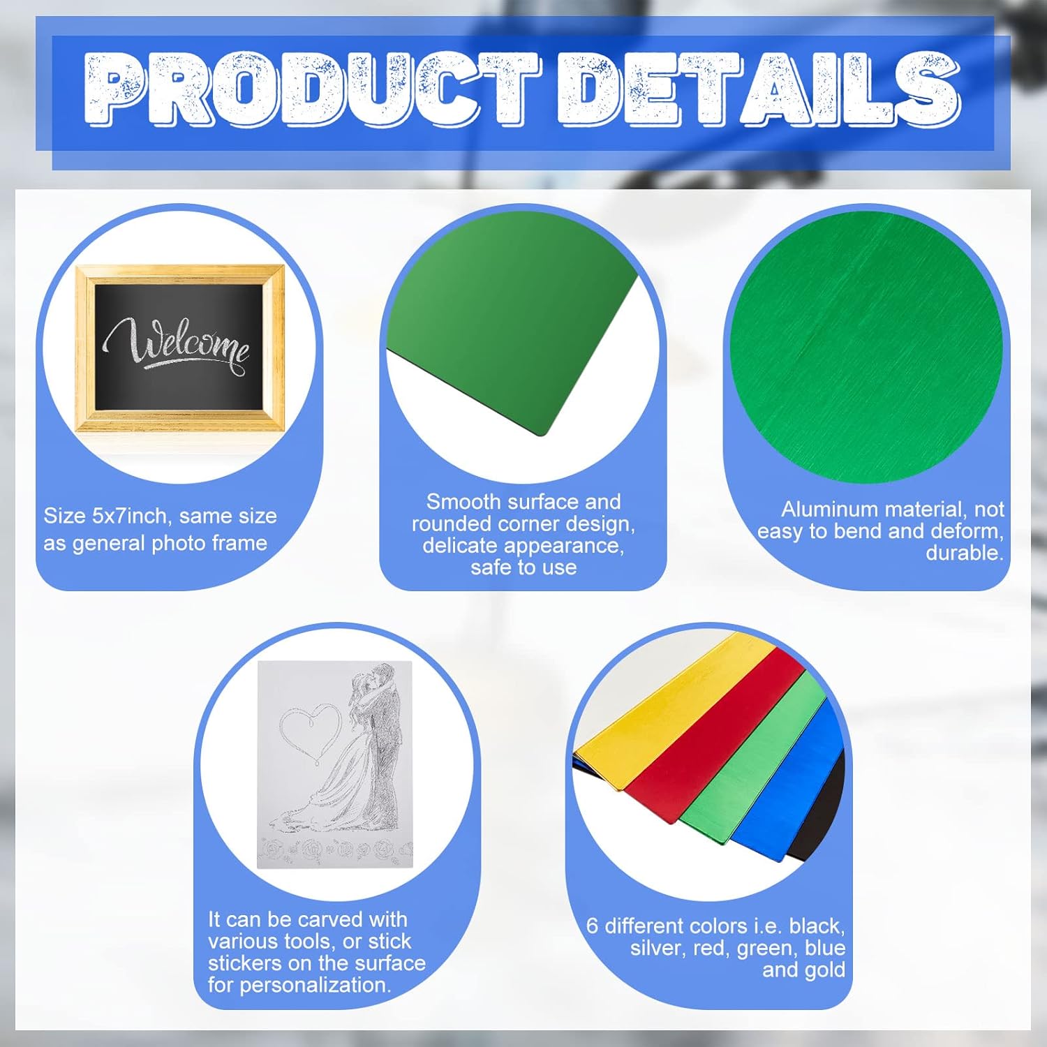 - Moderate in Size: each metal engraving tool measures approx. 5 x 7 inches, and its thickness is about 0.8 mm, suitable for engraving different signs, badges, brands, metal plaque, table plate, label plate and more