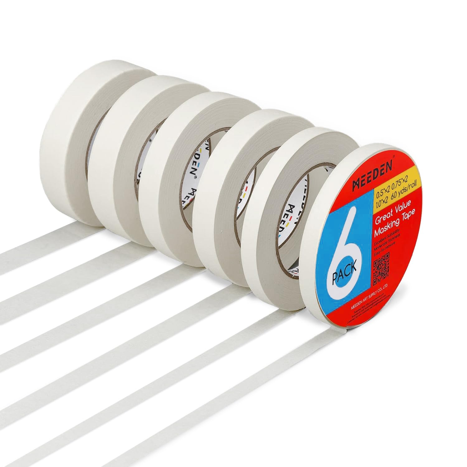 MEEDEN 6 Packs White Artist Tape, 0.5" 0.75" 1.0" x 60 Yard, Multi-Sized Masking Art Tape, Acid-Free Painters Tape for Painting Drafting Canvas Framing, General Purpose for Craft, Office, School