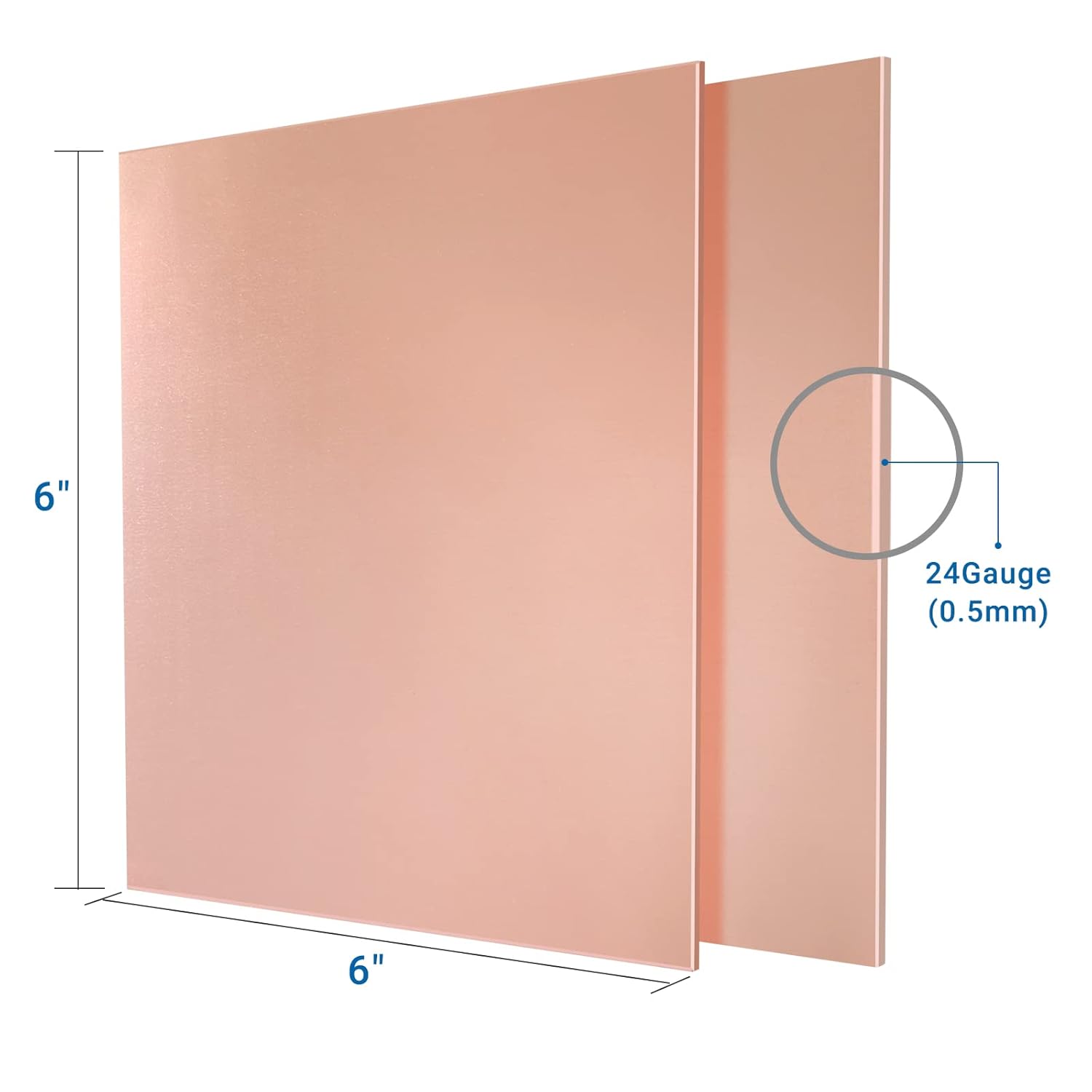 - 2Qty Pure Copper. 6" x 6", 24 Gauge(0.5mm) Thickness