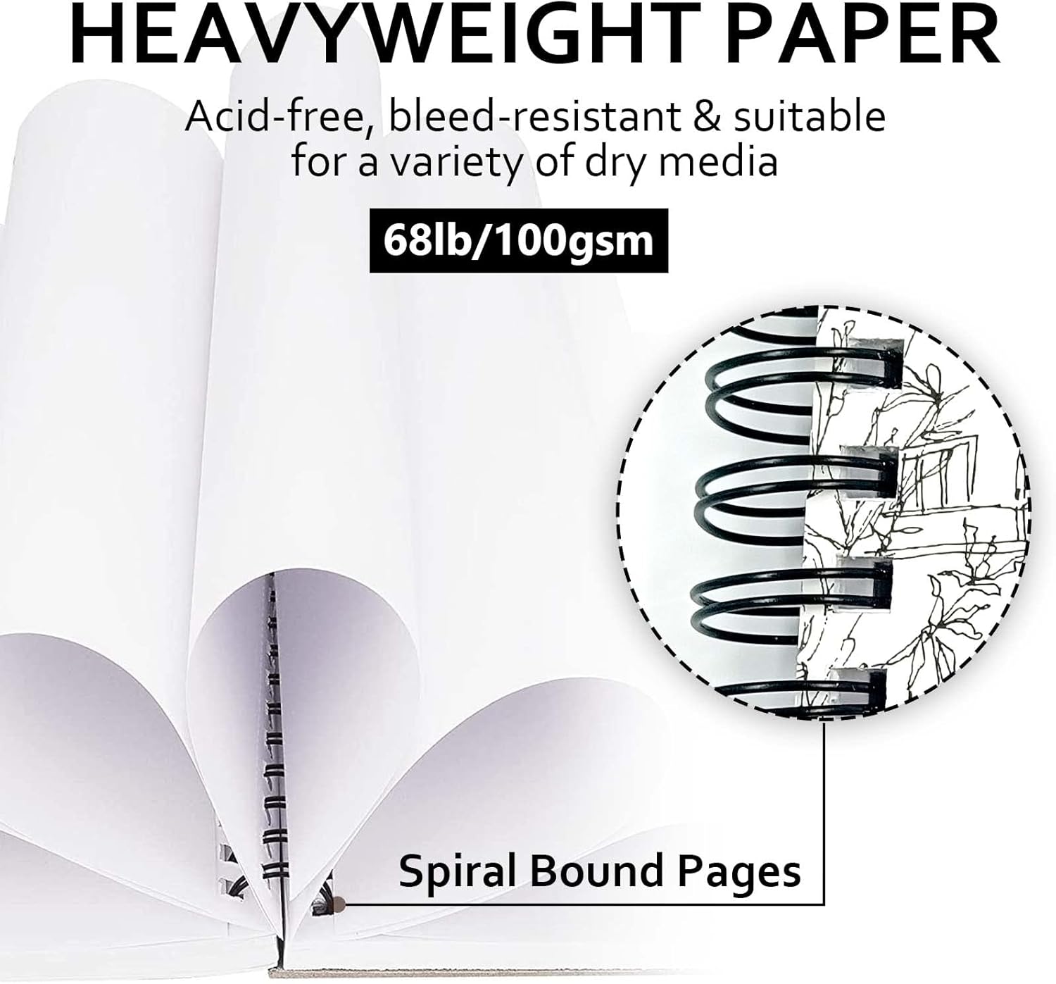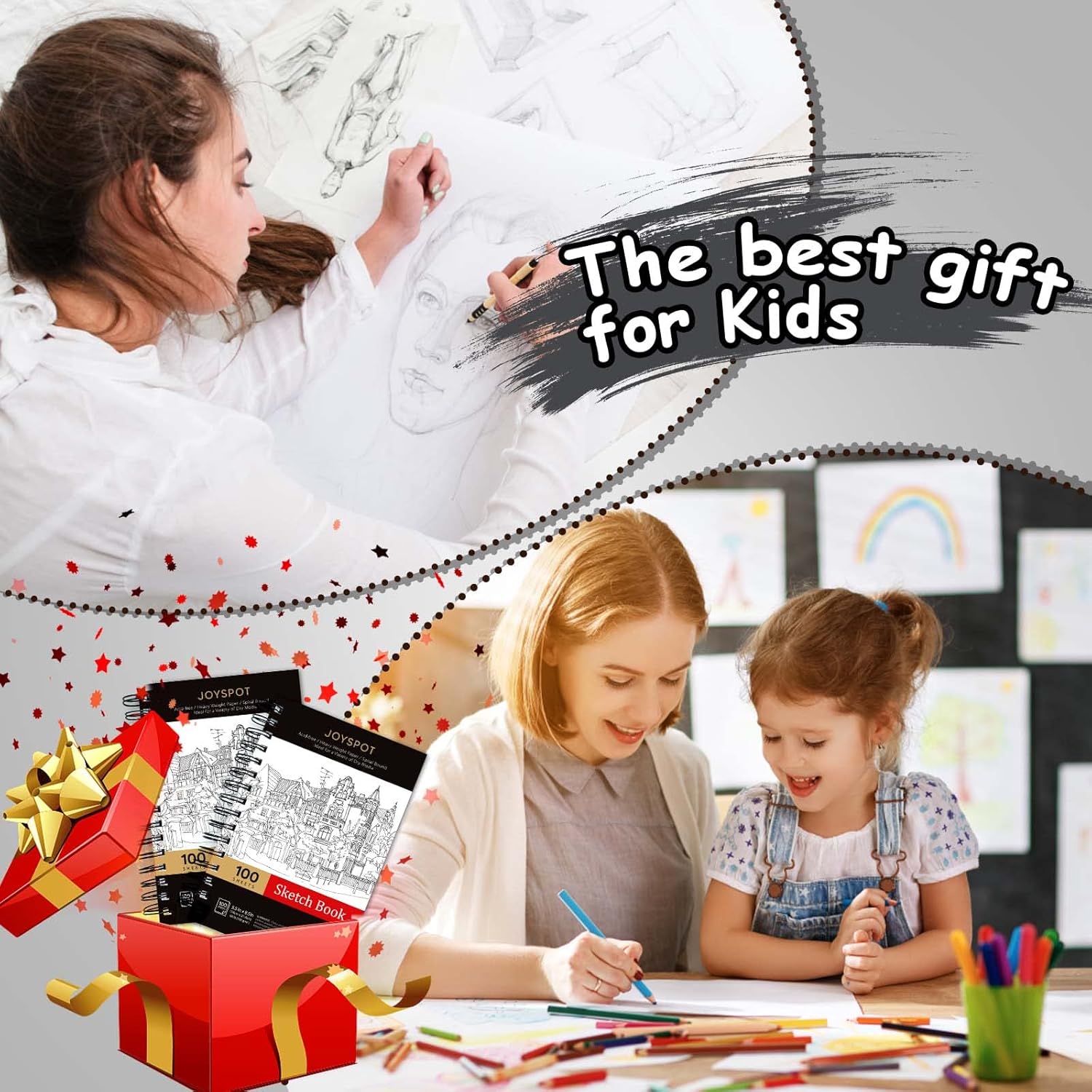 JOY SPOT! 5.5x8.5 Inch Sketch Book, Pack of 2, 200 Sheets (68 lb/100gsm), Spiral Bound Artist Sketch Pad for Artist Pro & Amateurs | Marker Art, Colored Pencil, Charcoal for Sketching