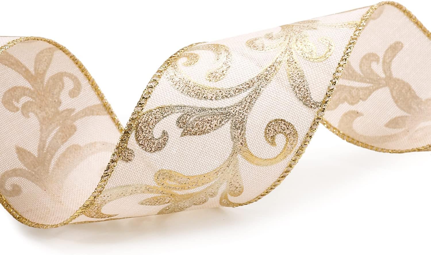- GREAT WORKMANSHIP - Our tan burlap gold swirl wird ribbon 2.5" has a density weave so you won’t find any loose edges. You won’t find any fraying ends or loose strings anywhere, making our tan burlap gold swirl wird ribbon 2.5" perfect for high-end and professional DIY works and Crafts.