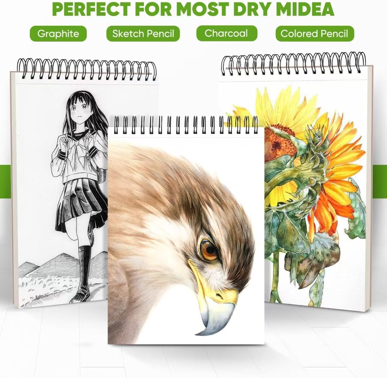 - 【Premium Paper Quality】Professional Sketch Book Drawing Pads. Great size 9 x 12 inches for all levels of artists. 100 sheets in each sketchpad, total of 100 premium sketch pad paper sheets at the affordable price. Nice texture for drawing, sketching. Excellent art paper book gift for who enjoys sketching, drawing, illustrating, painting, writing and creating art. Great sketchbook for using with graphite pencils, colored pencils, charcoal, pens, soft oil pastel, sketching sticks and more.