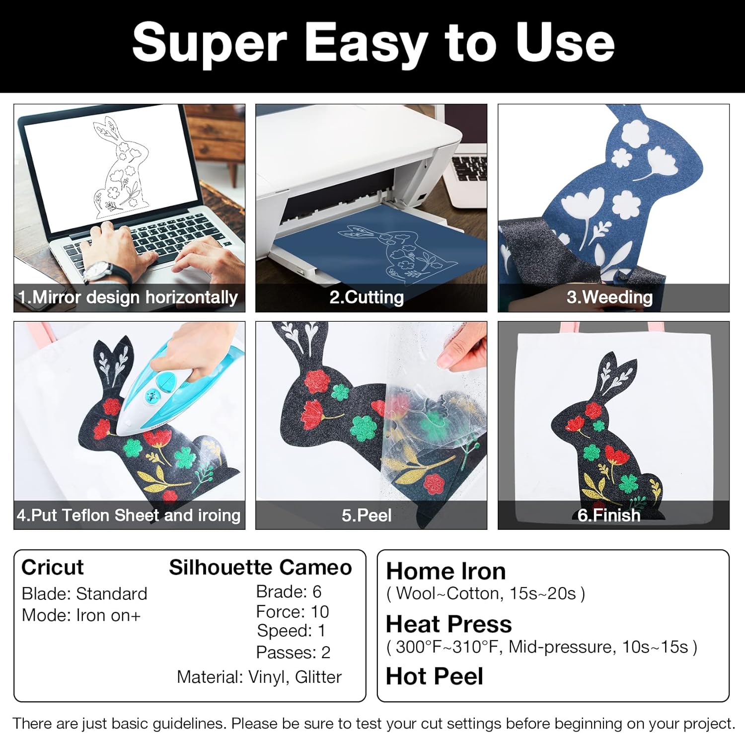 - Easy to Cut & Weed & Transfer: Combined sparkle glitter with heat transfer vinyl, this glitter htv has proper thickness and excellent adhesion, which allows to run your creativity wild and add some shine to all your projects even for the beginners