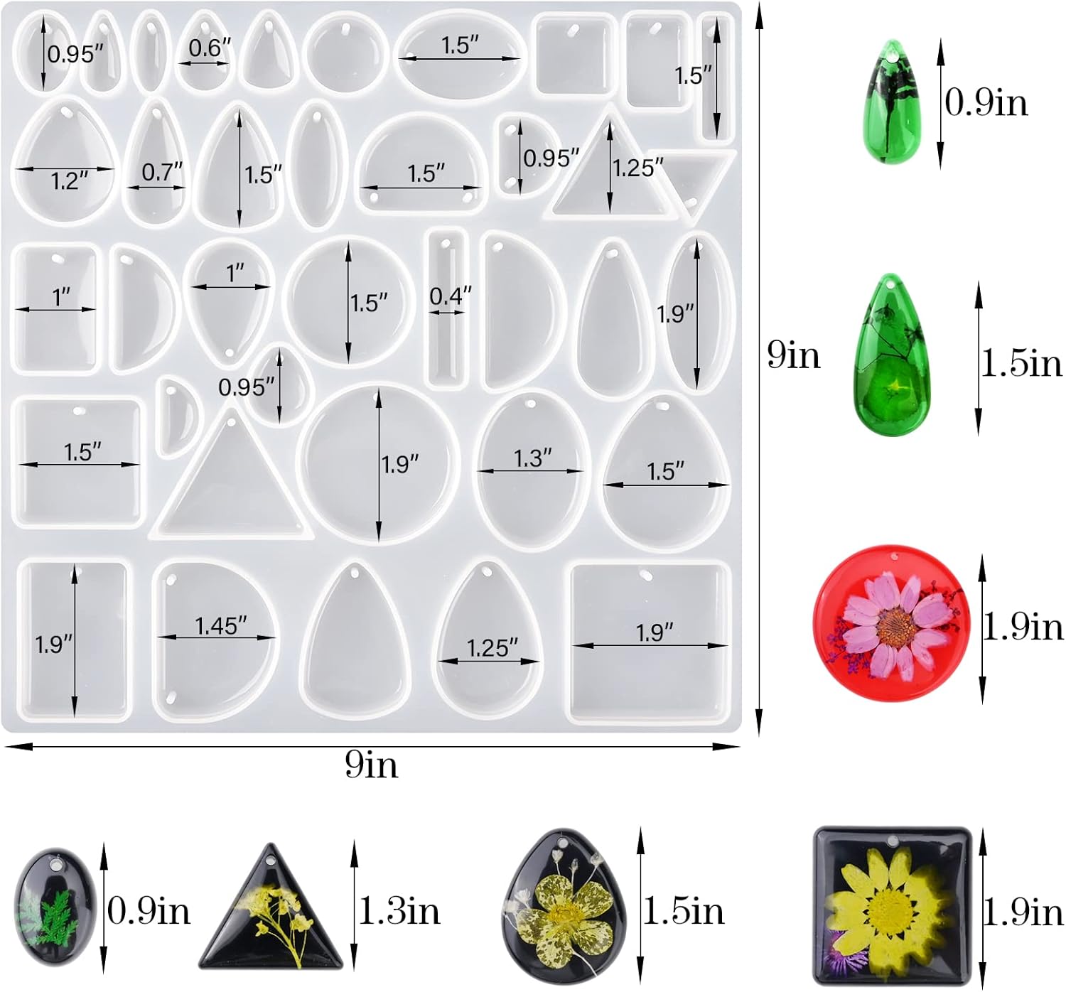 - Jewelry Resin Molds - You will get 1 x jewelry resin mold, size about 9"L x 8.9"W x 0.44"H. resin jewelry molds are with hanging hole design, you don't need to drill holes after finishing the product, great for necklace pendant or earring jewelries making.