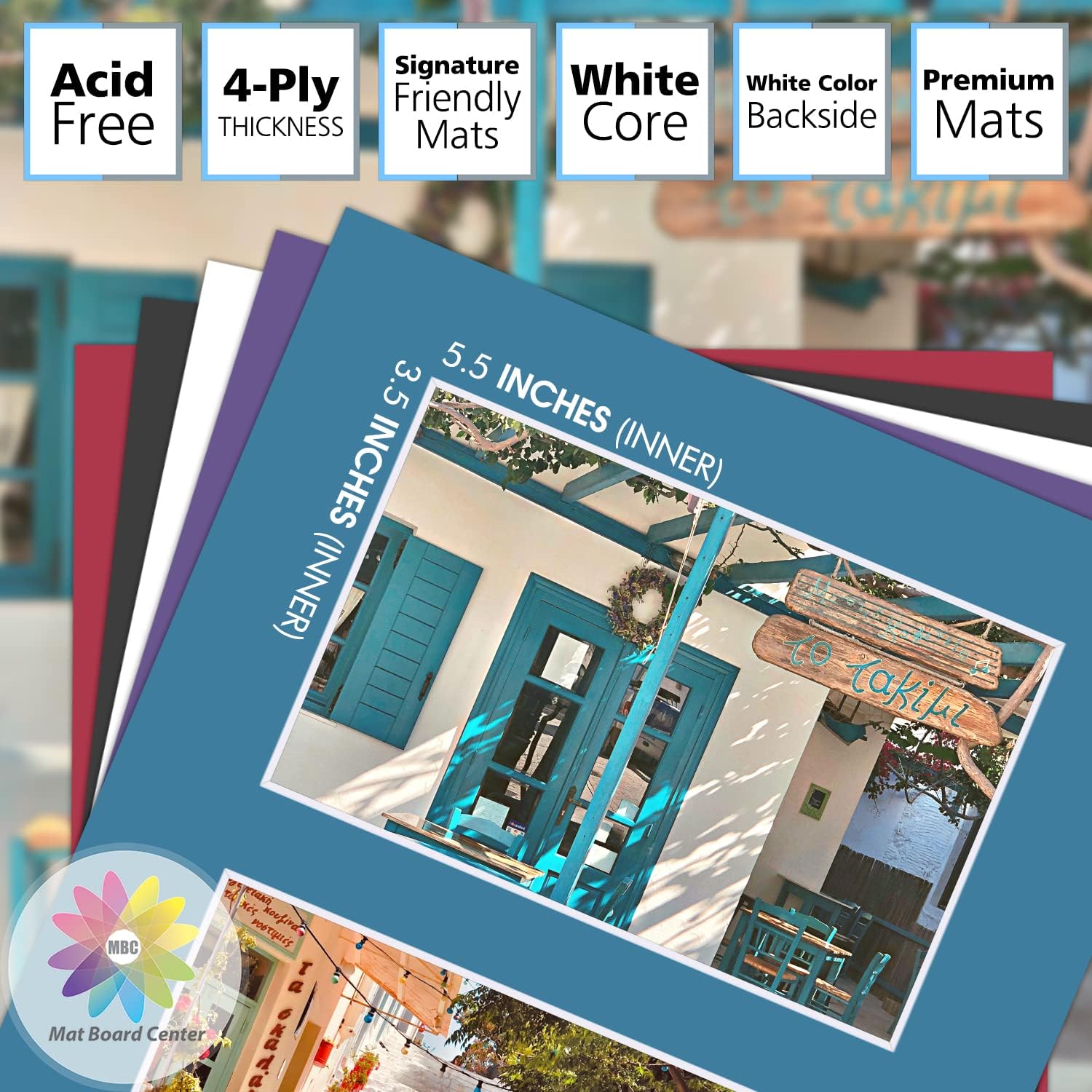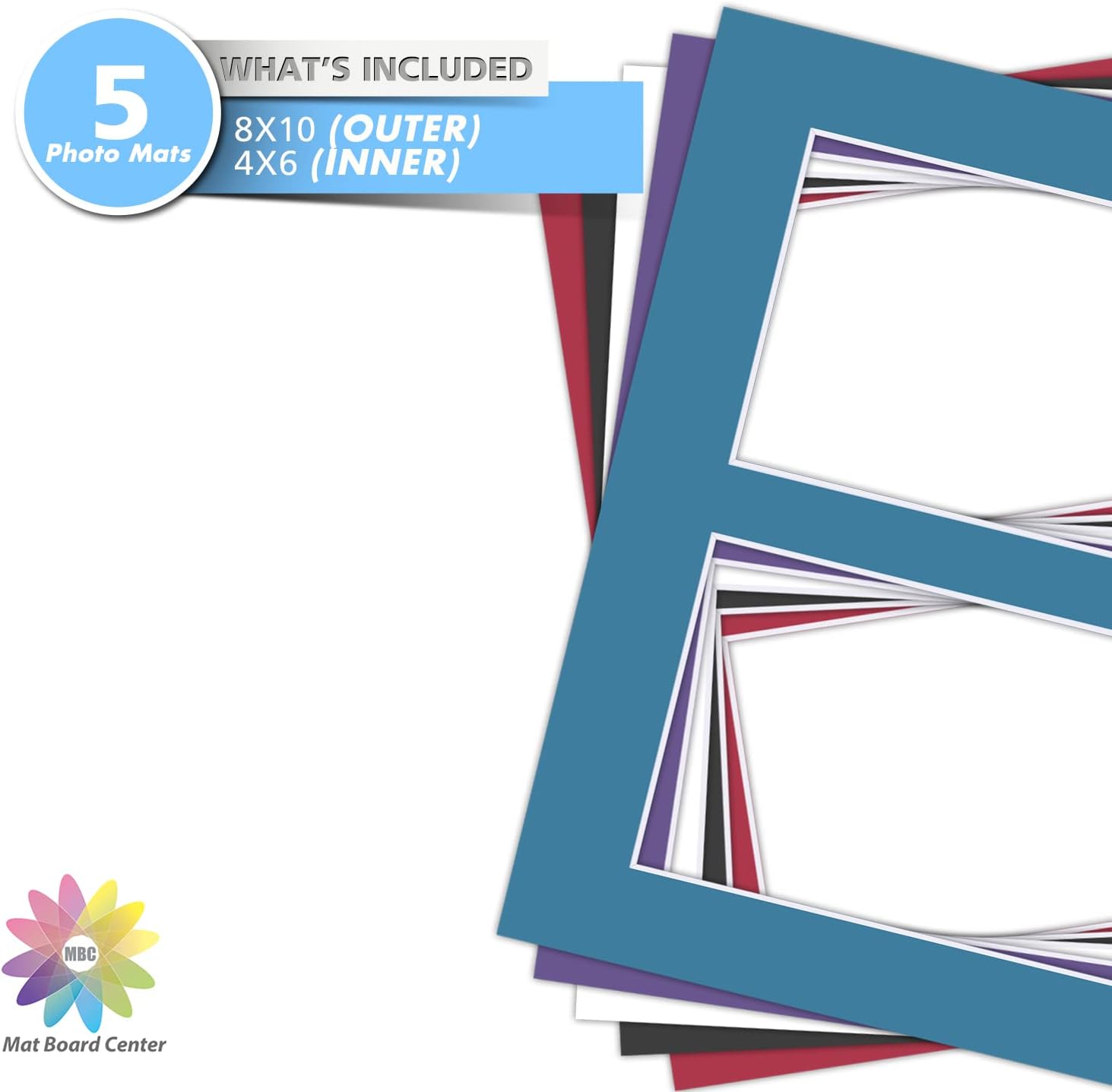 Mat Board Center, Pack of 5, Photo Picture Mats - Acid Free, 4-Ply Thickness, White Core - for Pictures, Photos, Framing (8x10 for 2-4x6 Mixed Color)