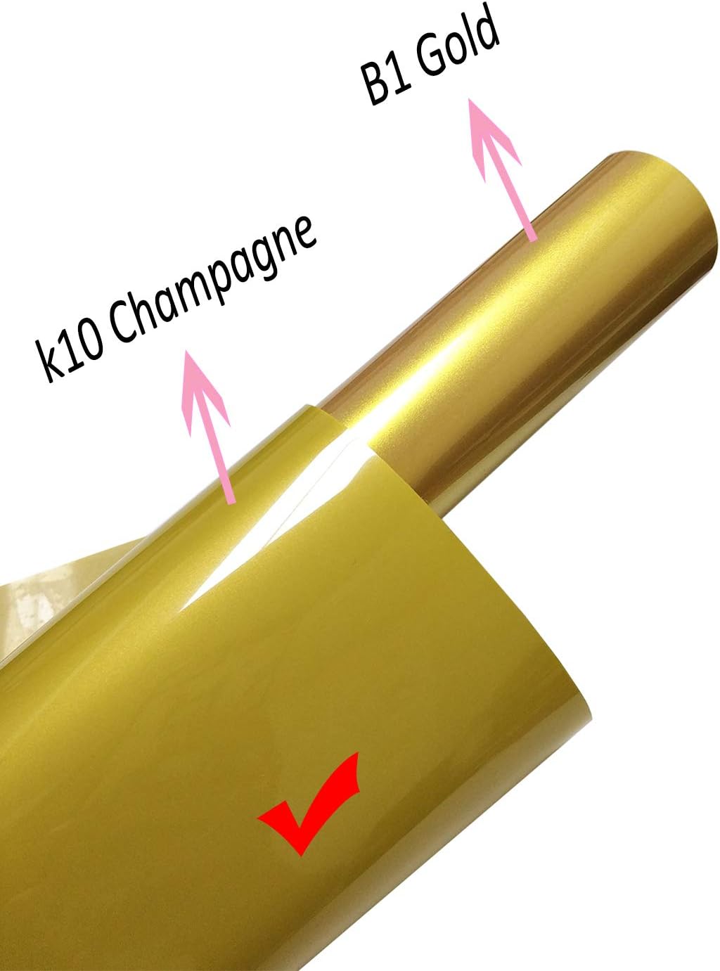 - UNIQUE ADHESIVE BACKING: Our golden iron on vinyl has two layers, a colored membrane and a protective sticky plastic membrane. You can stick back when you weed wrongly, the misaligned part can be glued back without wasting material. The sticky transparent plastic film can be fixed on the clothes, which don't move easily. So it is suitable for beginners, easy to weed and heat