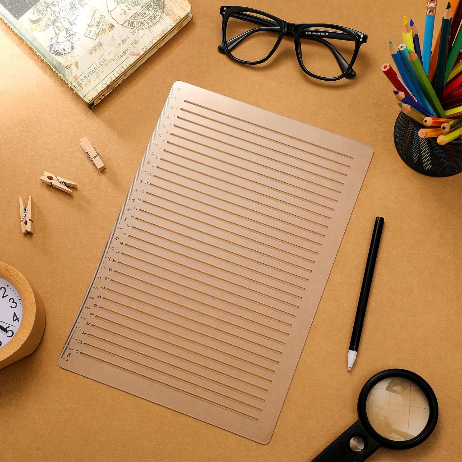 - Straight Line Stencil: the calligraphy ruler guide is designed with a measuring scale of about 28cm/11 inches, can draw 30 lines of about 16 cm/6.3 inches; The spacing line is about 0.9 cm, which is enough to allow using medium nib and pen to move easily and draw straight lines