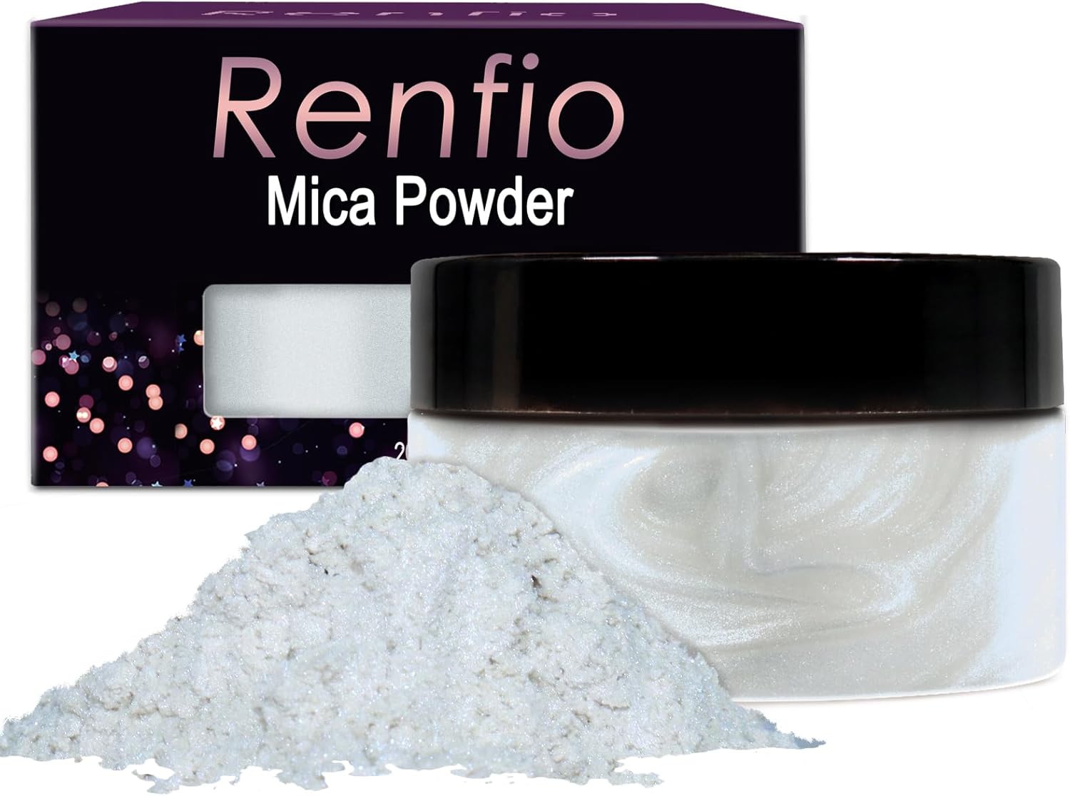 - ✅Big Weight With Spoon - Tired of buying mica powder in small packages? Renfio mica powder size is 3.5 Oz, 1 bottle can satisfy all your needs. Bring small spoon, easy to use mica powder, no cross contamination, no waste, and keep the table clean.