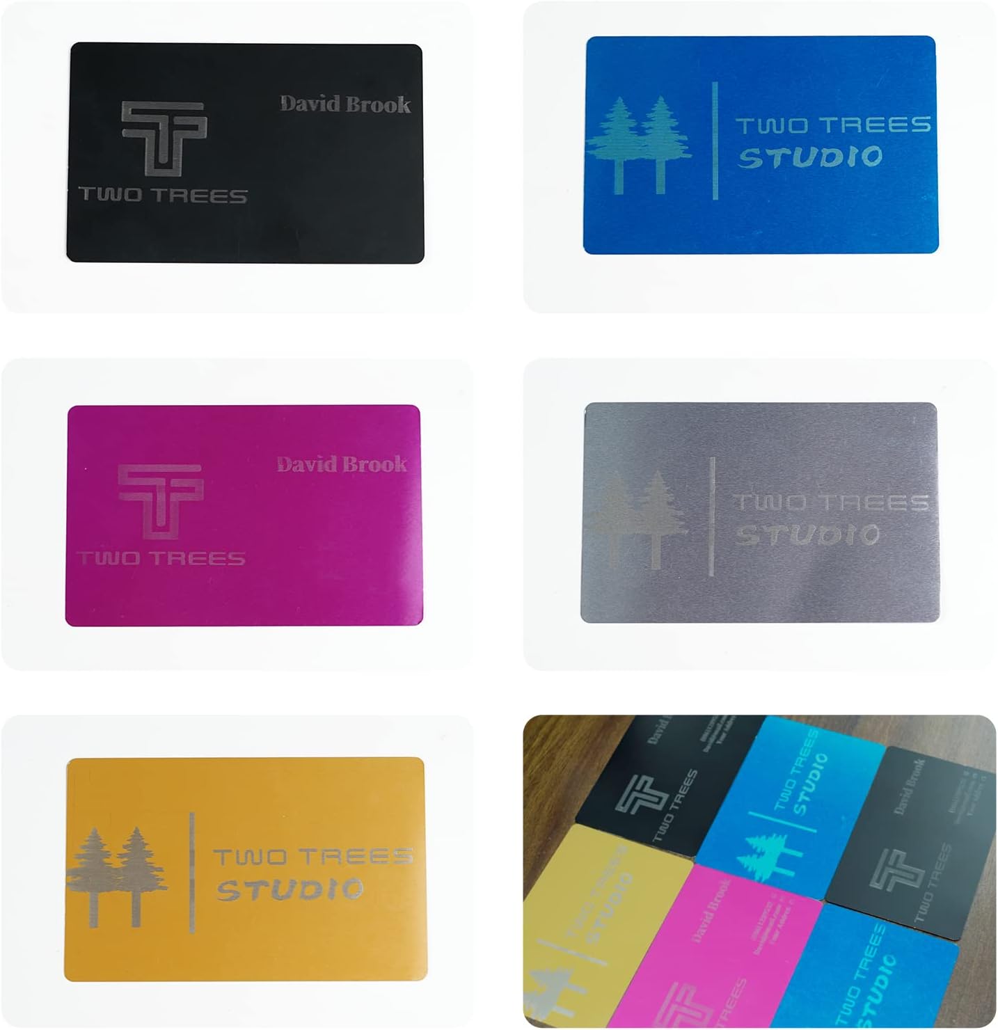 - 25 Pcs Blank Business Card: 5 Different Colors, Anodized Aluminum. The coating is non-reflective, you can engrave the exquisite patterns and text you want, or make personalized business cards, etc.