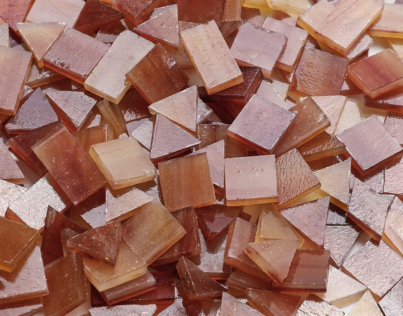 Lanyani Glass Mosaic Tiles for Art Crafts, 4 Shapes Mixed Colorful Tiles Tier, 200 Pieces, Square/Rectangle/Diamond/Triangle, Medium Brown
