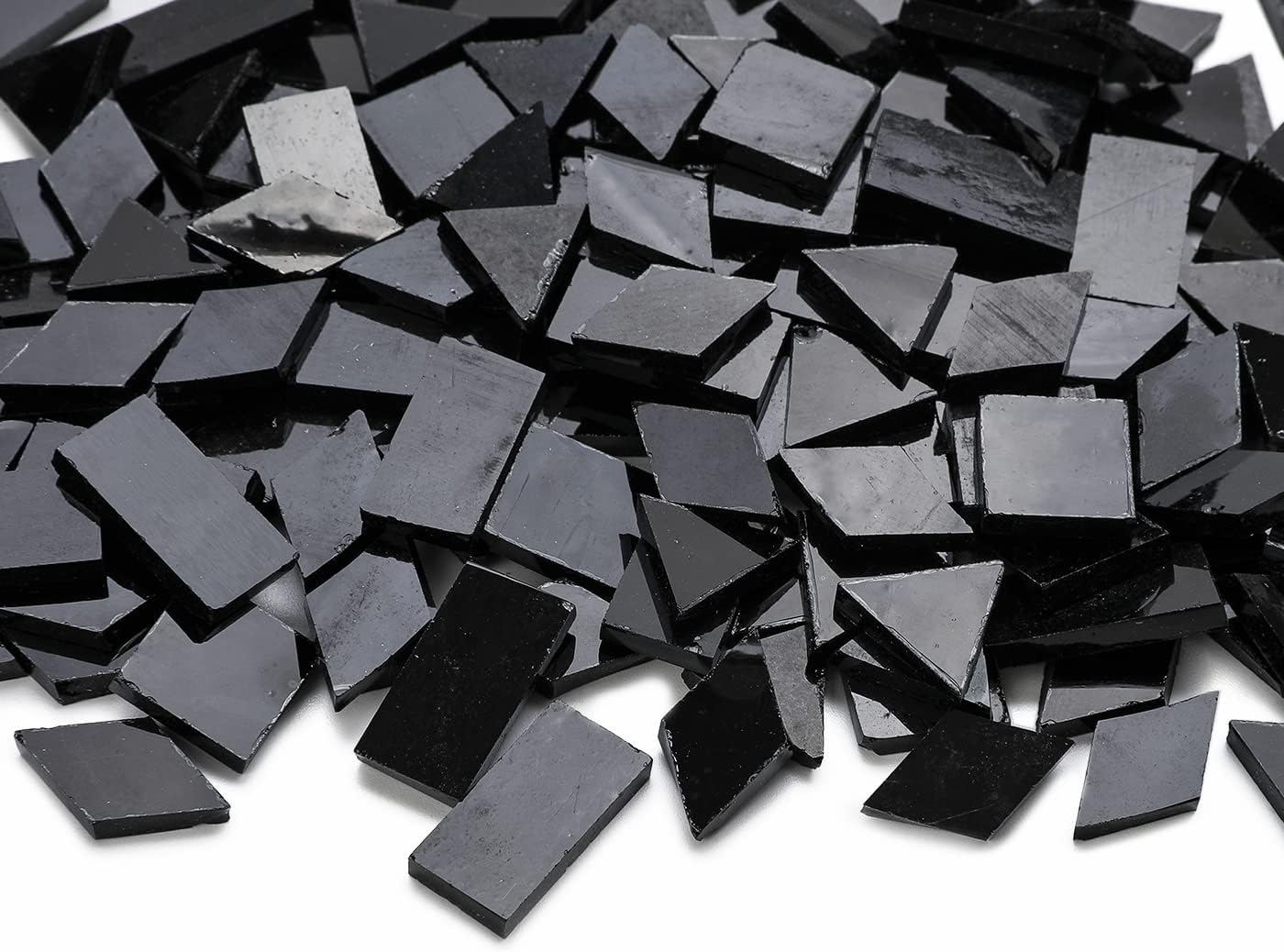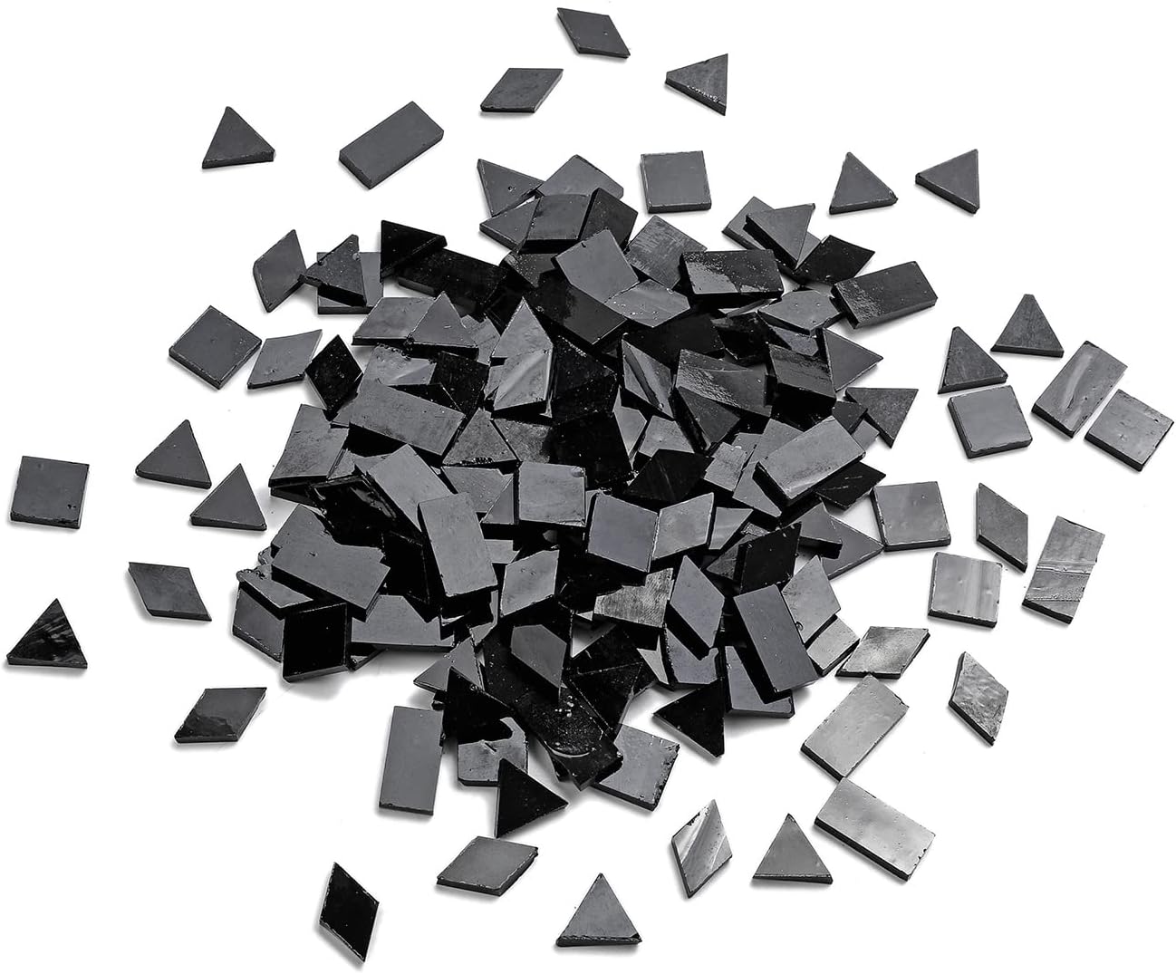 Multi-Color Options, Lanyani Glass Mosaic Tiles for Crafts,4 Shapes Mixed Colorful Glass Tiles Tiffany Stained Glass Pieces for Mosaic, 200 Pieces,Regular Black