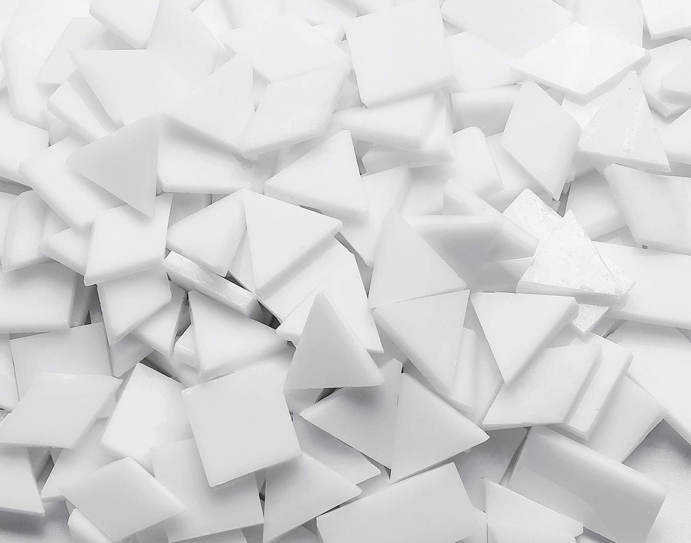 - 4 shapes mixed in each package - These mosaic pieces come with Square, Rectangle, Diamond and Triangle. Having all these precut beautiful shapes will not only save you a tremendous amount of time, but will also inspire you when trying to create new designs