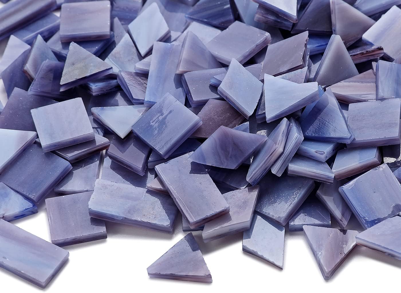 Lanyani Glass Mosaic Tiles for Art Crafts, 4 Shapes Mixed Colorful Glass Tiles Tiffany Stained Glass Pieces, 200 Pieces, Square/Rectangle/Diamond/Triangle,Blue Purple