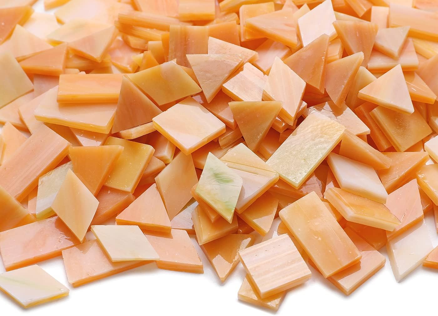 Lanyani Glass Mosaic Tiles for Art Crafts, Mixed Colorful Glass Tiles, 200 Pieces, Square/Rectangle/Diamond/Triangle, Frosty Peach