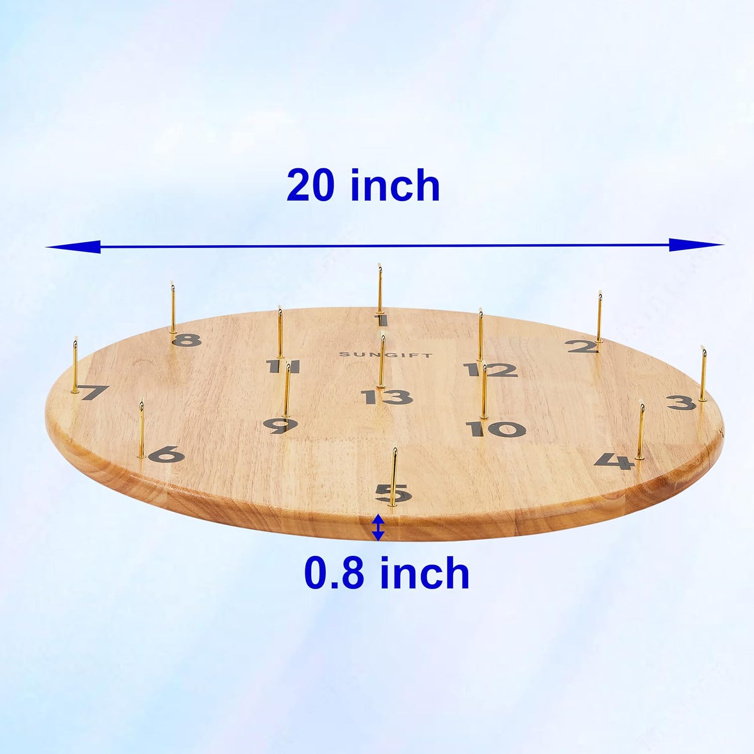 - RING TOSS KIT - Package includes a handmade wooden ring toss board, 15 metal hooks (2 of them are backup), 18 Silicone rings (6 black, 6 red, 6 blue rings), and 1 clear instruction to play.