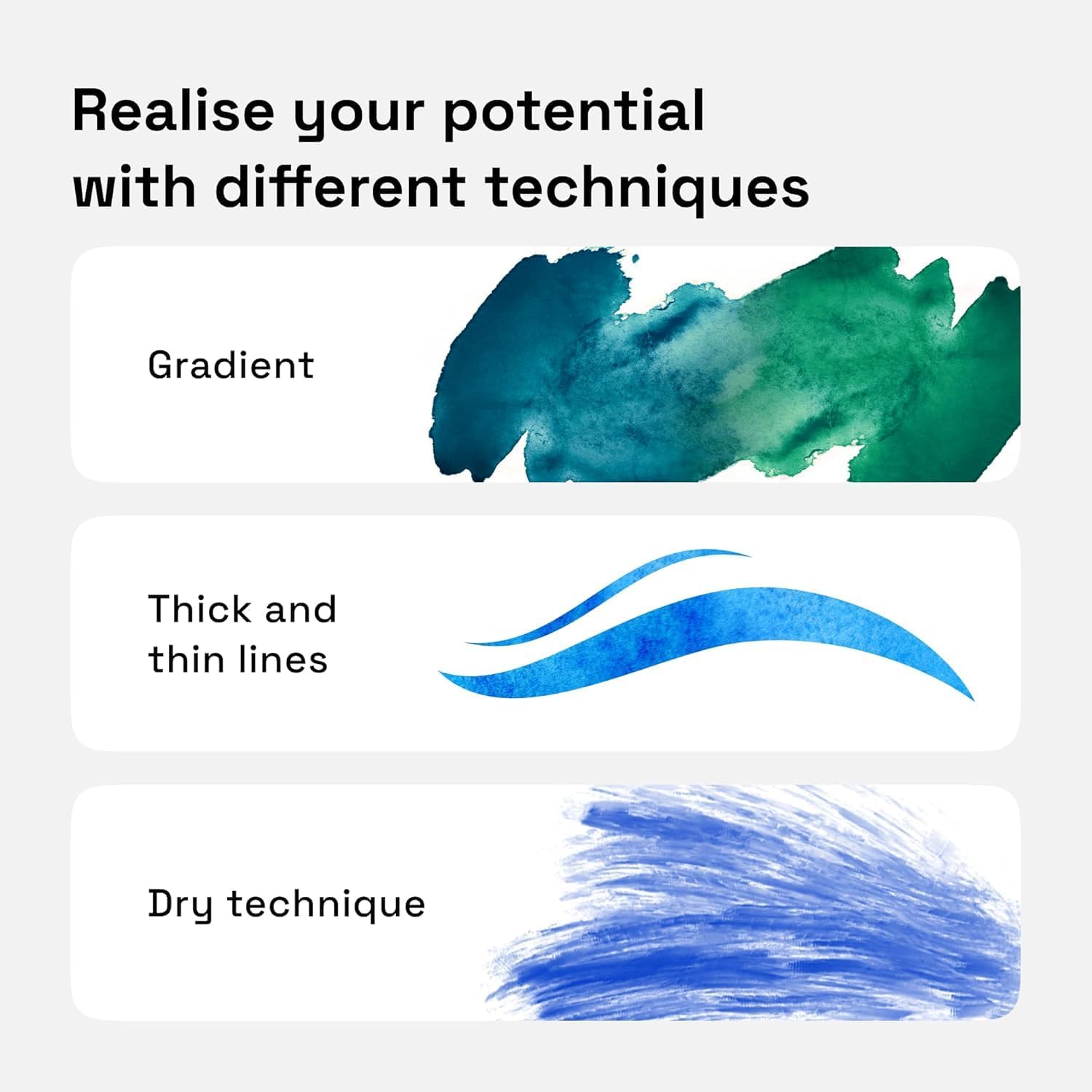 - HIGH QUALITY NYLON PAINTBRUSHES: The nylon brushes on these watercolor brush pens have 0.05-5 mm tips that are self-moistening, self-cleaning, and won't fracture. No need to wet the brushes, just paint and go!