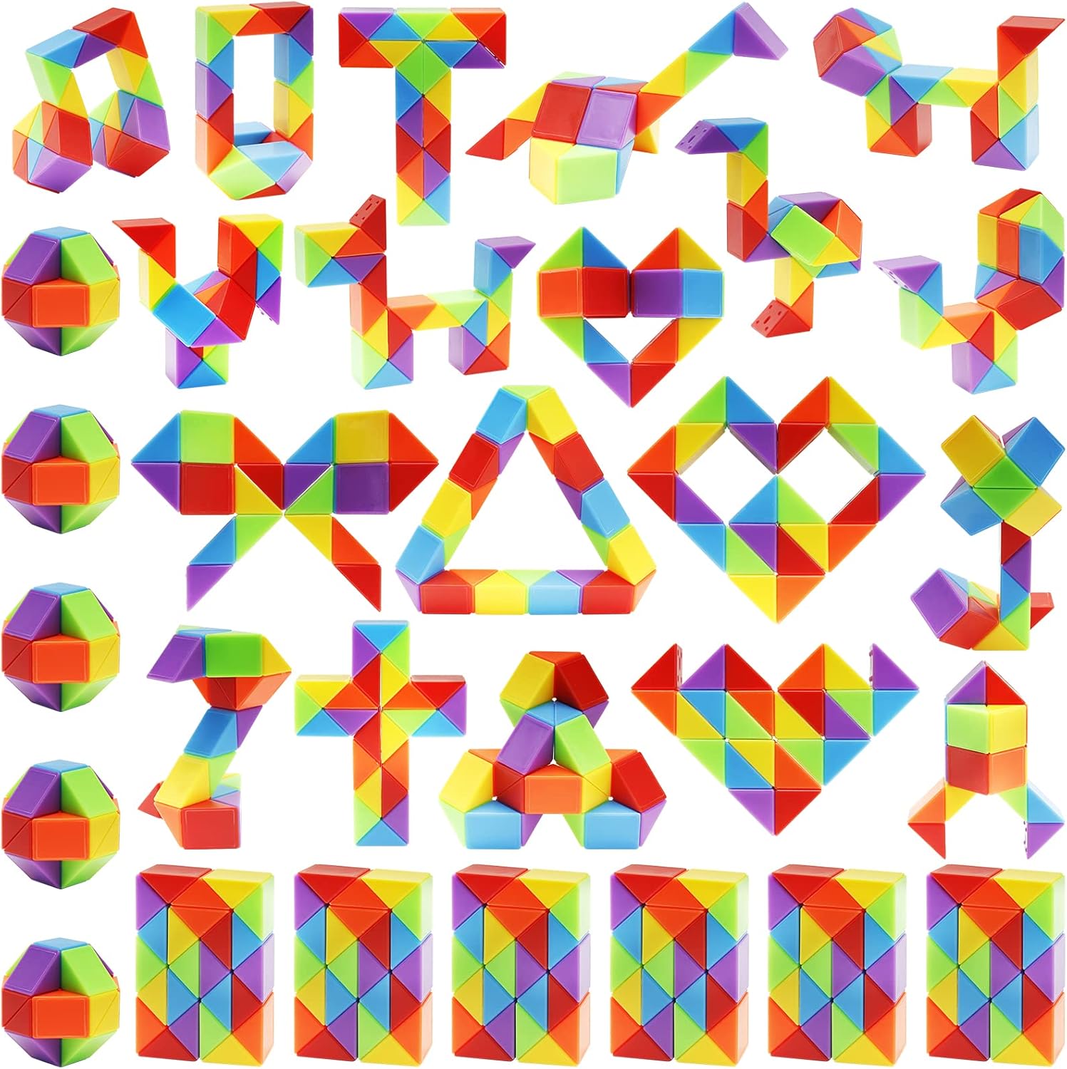 Ganowo 30 Pack Party favor, Medium Fidget Snake Cube Twist Puzzle Toys for Kids Teens Stocking Stuffers Bulk Birthday Party Supplies Goodie Bags Fillers (Rainbow)