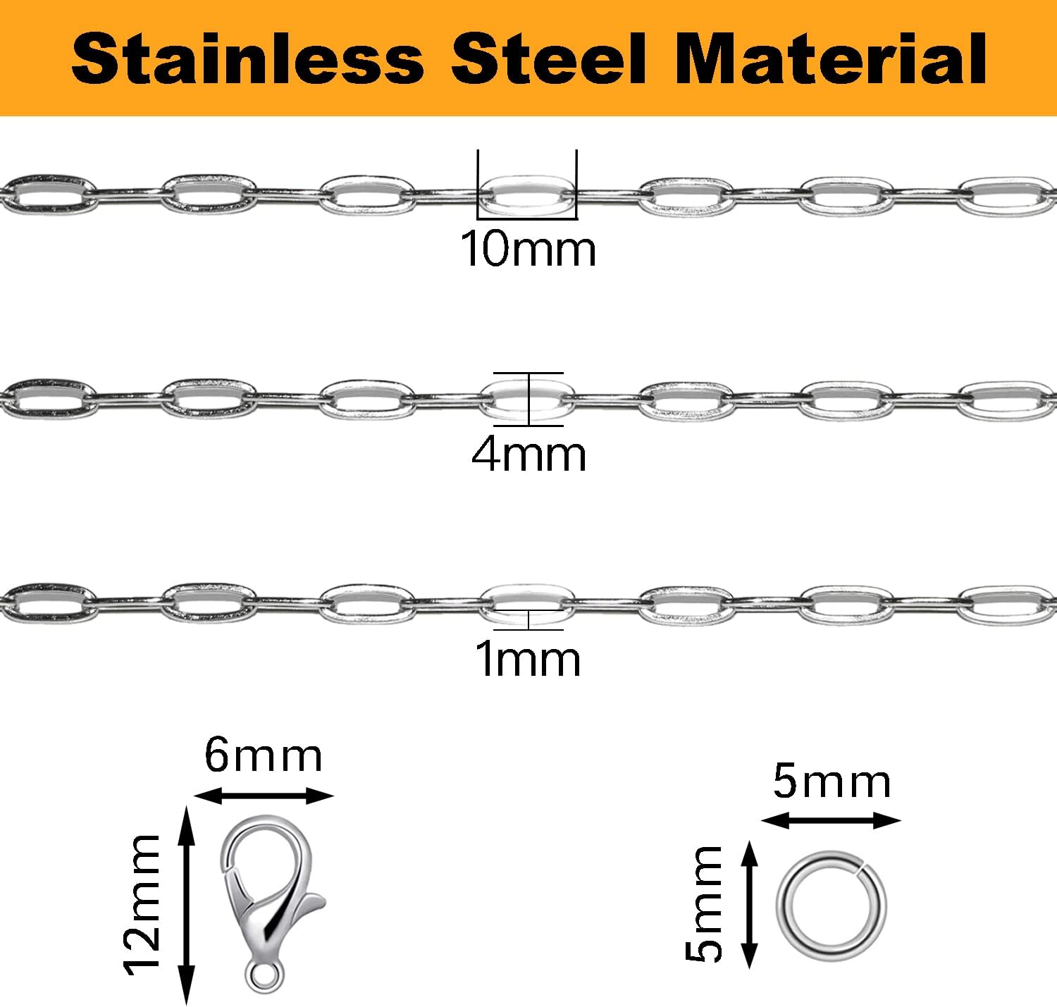 - Included Components : 16ft Paperclip Chain for Jewelry Making - Silver Stainless Steel - 4mm