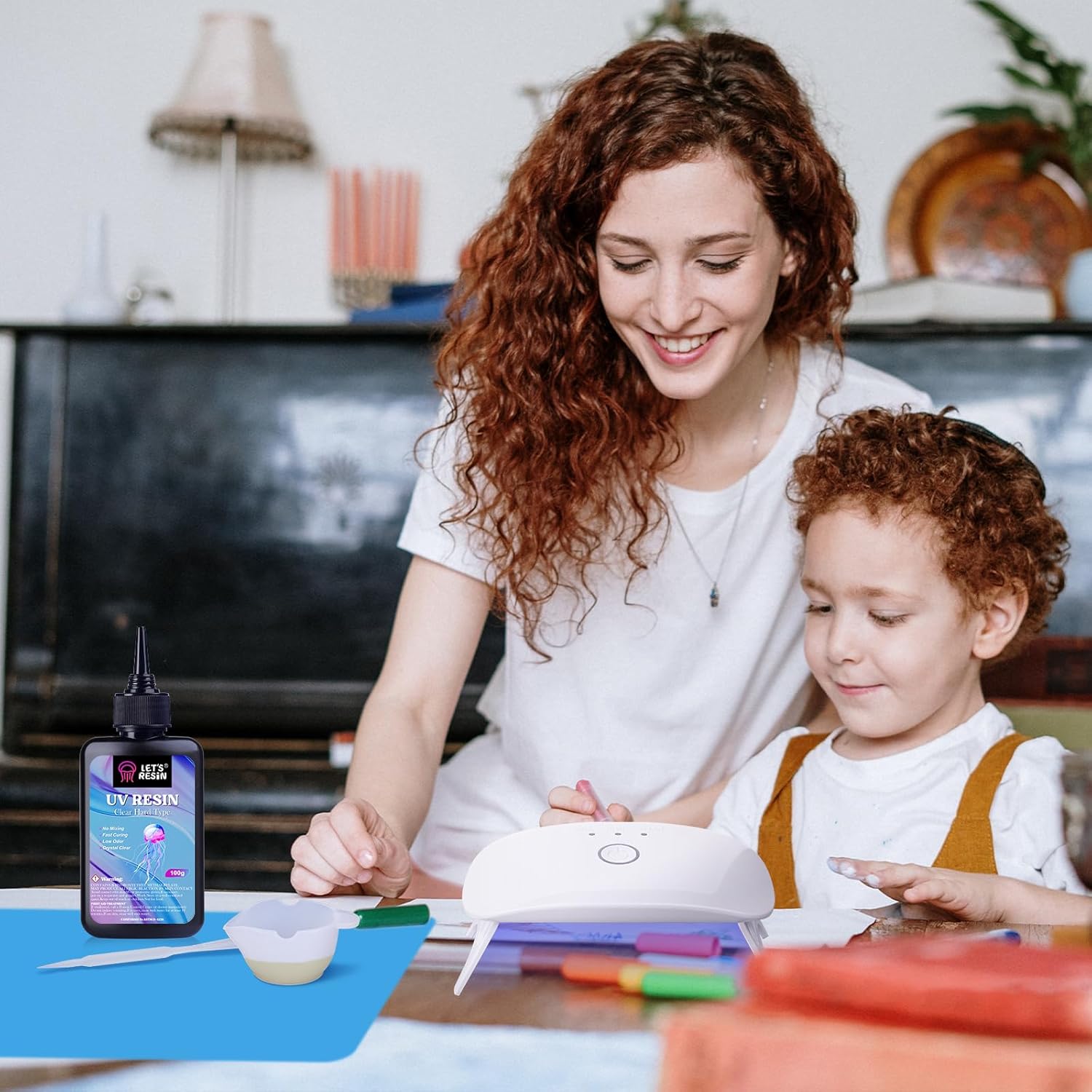 LET'S RESIN UV Resin with Light,Upgraded 200g Crystal Clear&Low Odor,UV Light,Silicone Mat,Ultraviolet Epoxy Resin Hard, Starter Kit for Jewelry,Craft Decor, Keychain Making