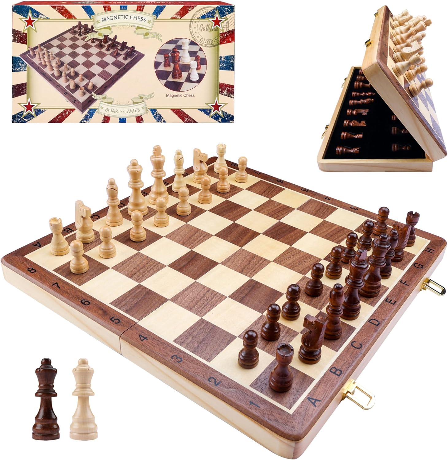 Gothink Magnetic Wooden Chess Board Set with Manual for Adults Kids 15 Inch Chess Puzzle with 32 Wood Handmade Pieces Folding Portable Travel Unique Chess Game for Tournament Professional Beginner