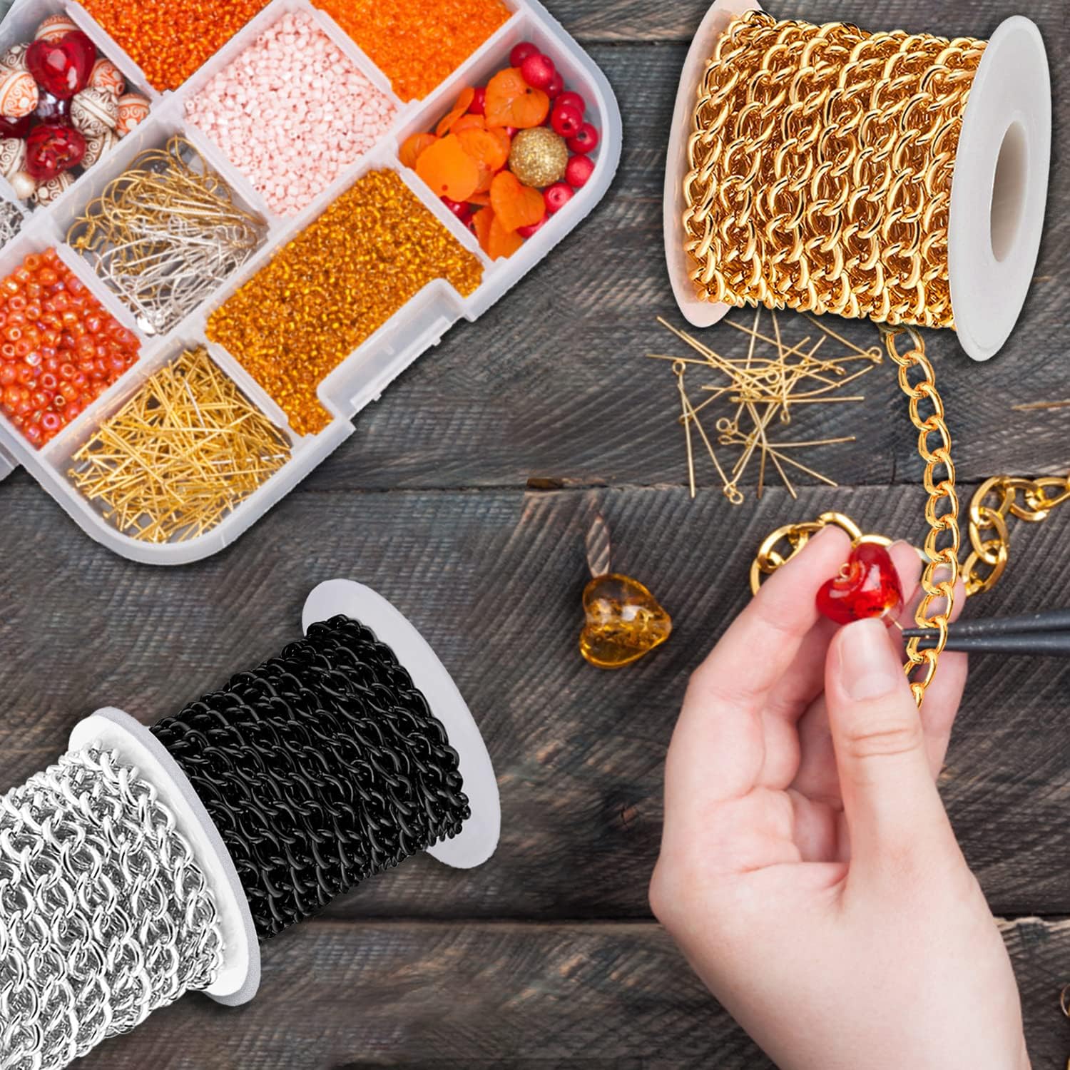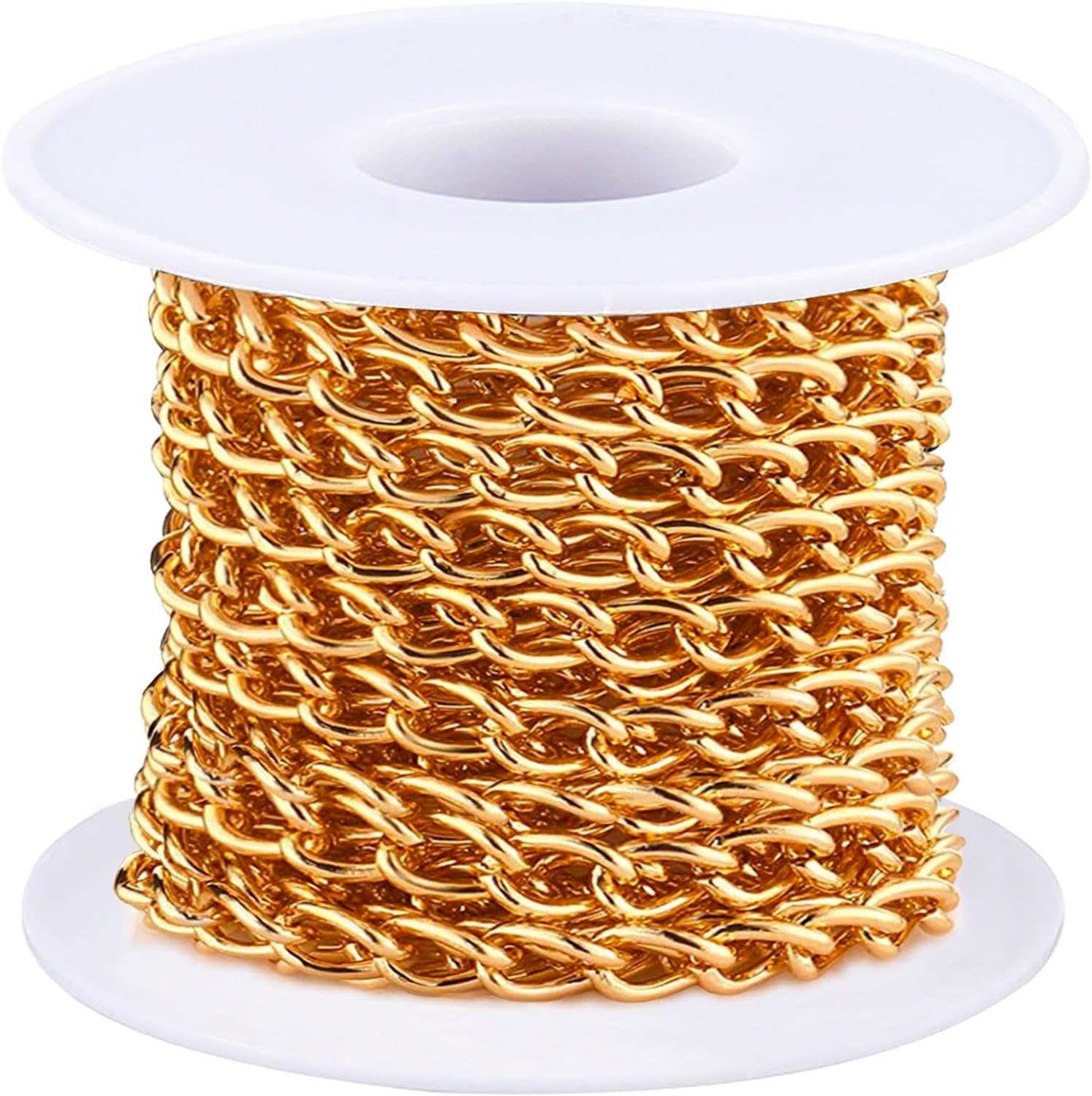 Jishi 16ft Aluminium Curb Chain Roll, Thick Twisted Chain Links, Gold Plated Metal Craft Chain Curb Link Chain Spool for Jewelry Making Necklace Bracelet DIY Crafts, Jewelry Making Findings Supplies
