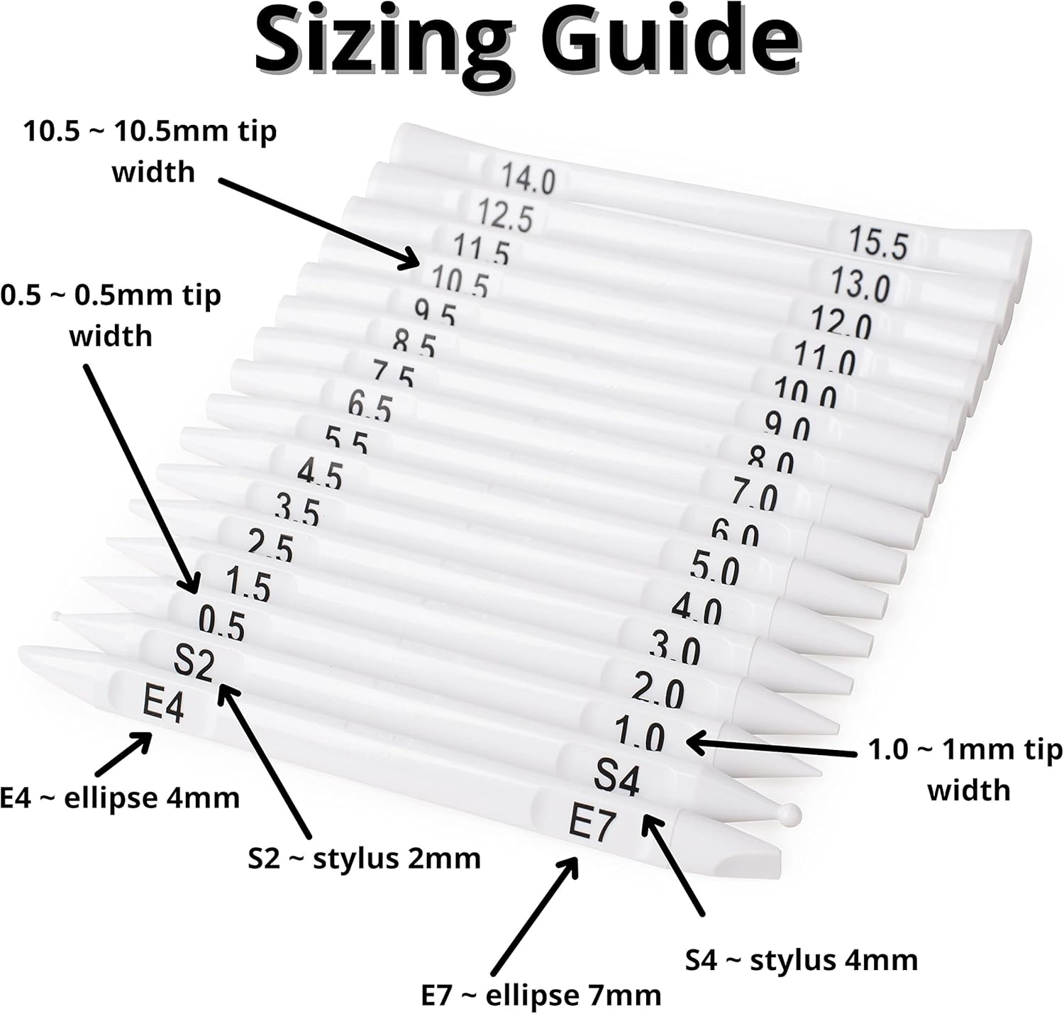 - ✅ 16 pc double ended dot art tools sizes range 0.5mm to 15mm plus unique ellipse tool and stylus for more creative options. Patent pending