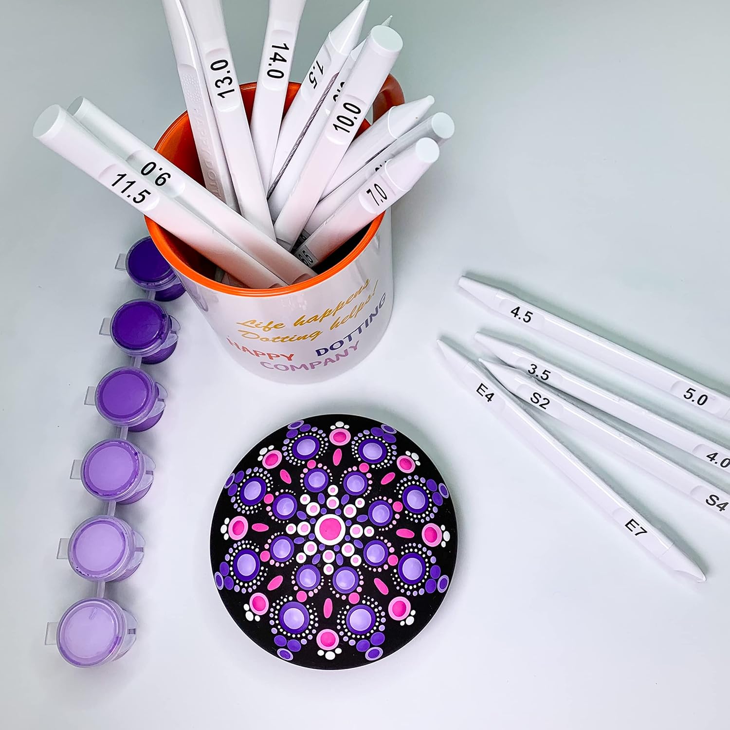 Dotting Tools for Painting Mandalas - Happy Dotting Company - 16pc Double Ended Super Set for Mandala dot Art - Includes Stylus - Unique Ellipse Tool - for Painting Rocks DIY Stone Craft and Canvas