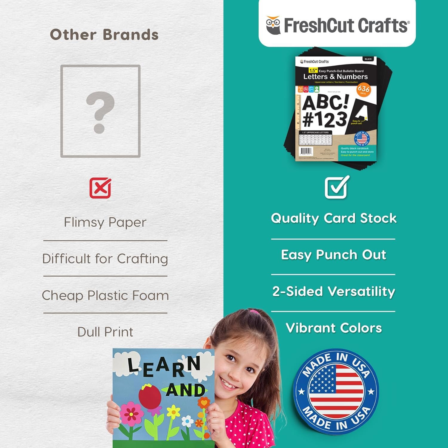 FreshCut Crafts 636 Pcs 1.5 in. Black Bulletin Board Letters & Numbers, Capital Alphabet Letters, Numbers, Punctuation, US Made Card Stock Punch Out Letters for Posters, Bulletin Boards, Classroom