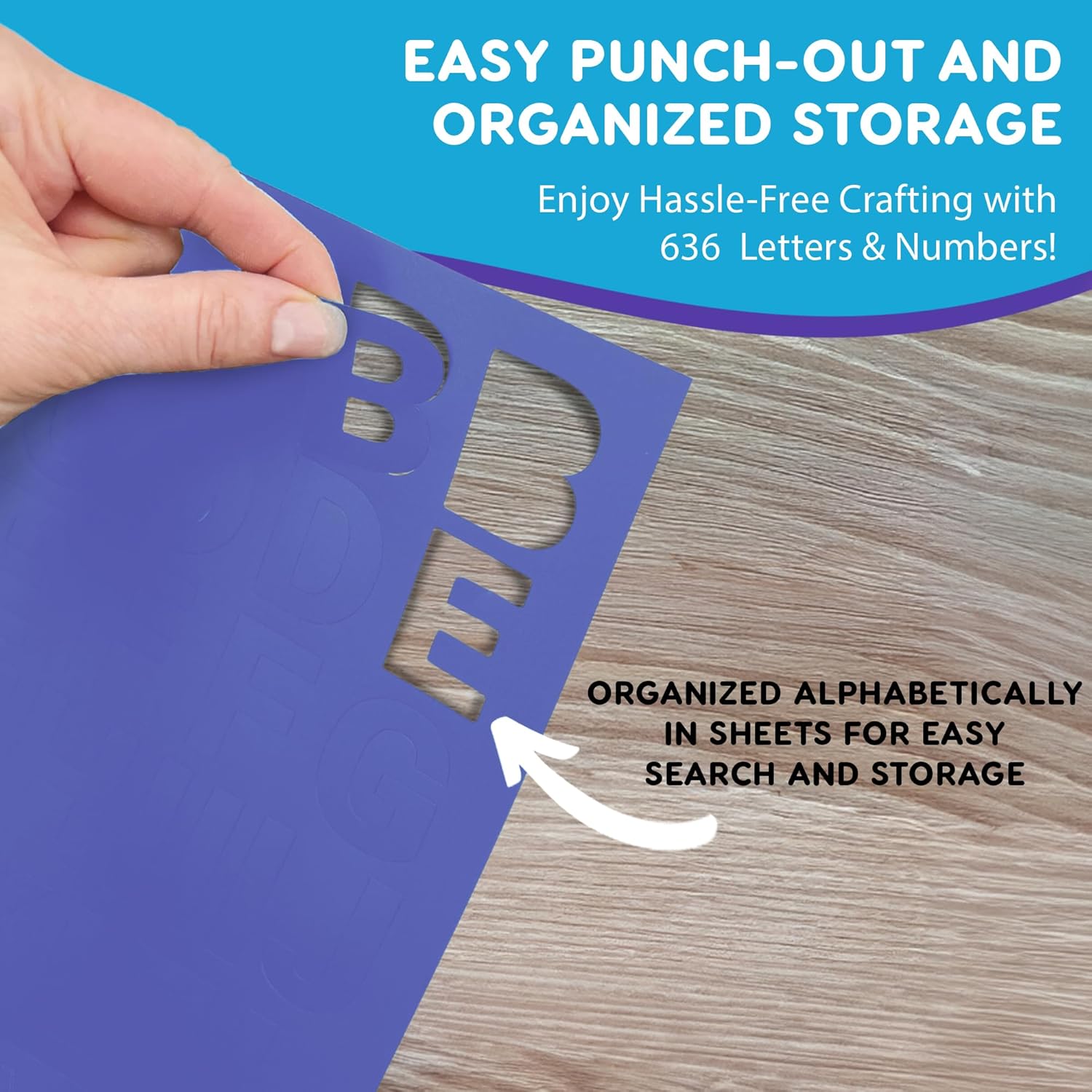 - VAST SELECTION FOR CREATIVITY: This pack offers a comprehensive assortment of 636 pieces, 1.5-inch capital punch-out letters, numbers, symbols, and punctuation on high-quality US-made purple cardstock. These letters for bulletin board are perfect for creating an extensive range of designs, from bulletin board letters to paper letters for classroom decor, banners, and more, providing ample options to fuel your creative projects.