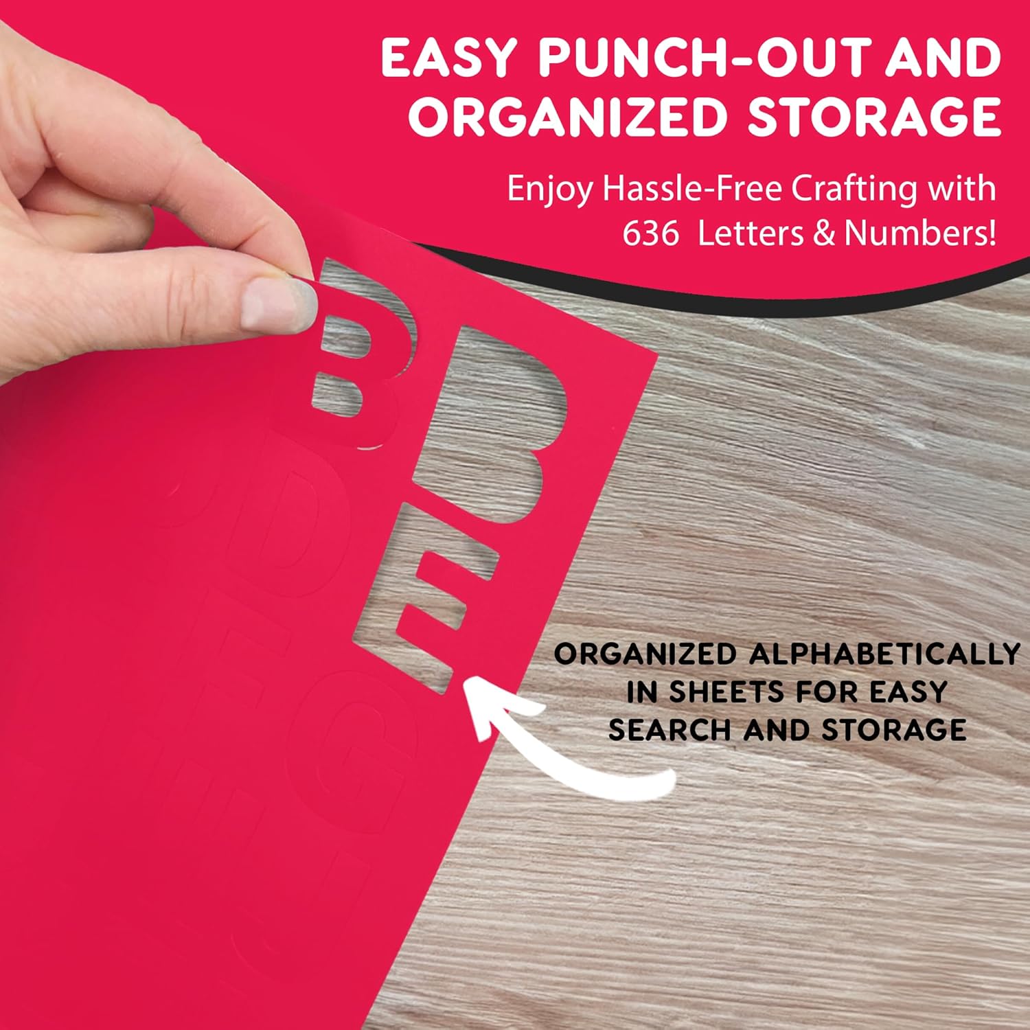 - VAST SELECTION FOR CREATIVITY: This pack offers a comprehensive assortment of 636 pieces, 1.5-inch capital punch-out letters, numbers, symbols, and punctuation on high-quality US-made red cardstock. These letters for bulletin board are perfect for creating an extensive range of designs, from bulletin board letters to paper letters for classroom decor, banners, and more, providing ample options to fuel your creative projects.