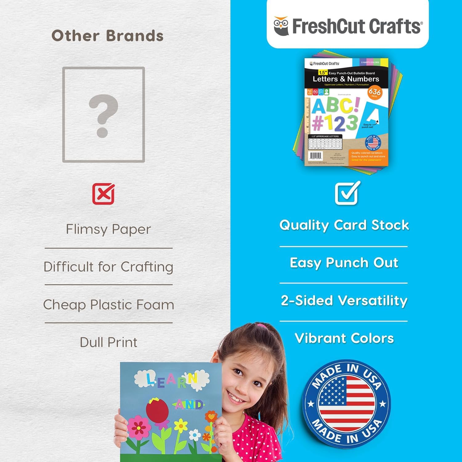 FreshCut Crafts 636 Pcs 1.5 in. Happy Colors Bulletin Board Letters & Numbers, Capital Alphabet, Numbers, Punctuation, US Made Card Stock Punch Out Letters for Posters, Bulletin Boards, Classroom