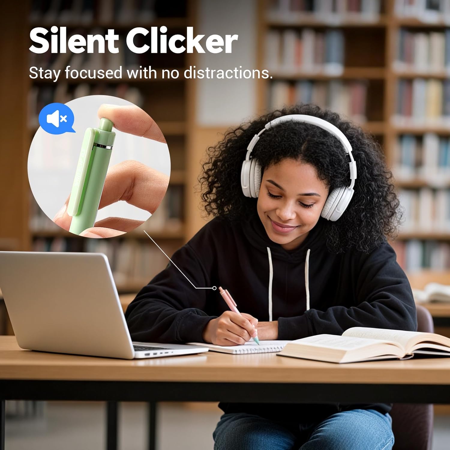 - Retractable Mute Design: Patented silent pressing structure reduces distractions to others especially in quiet places such as libraries and art galleries.