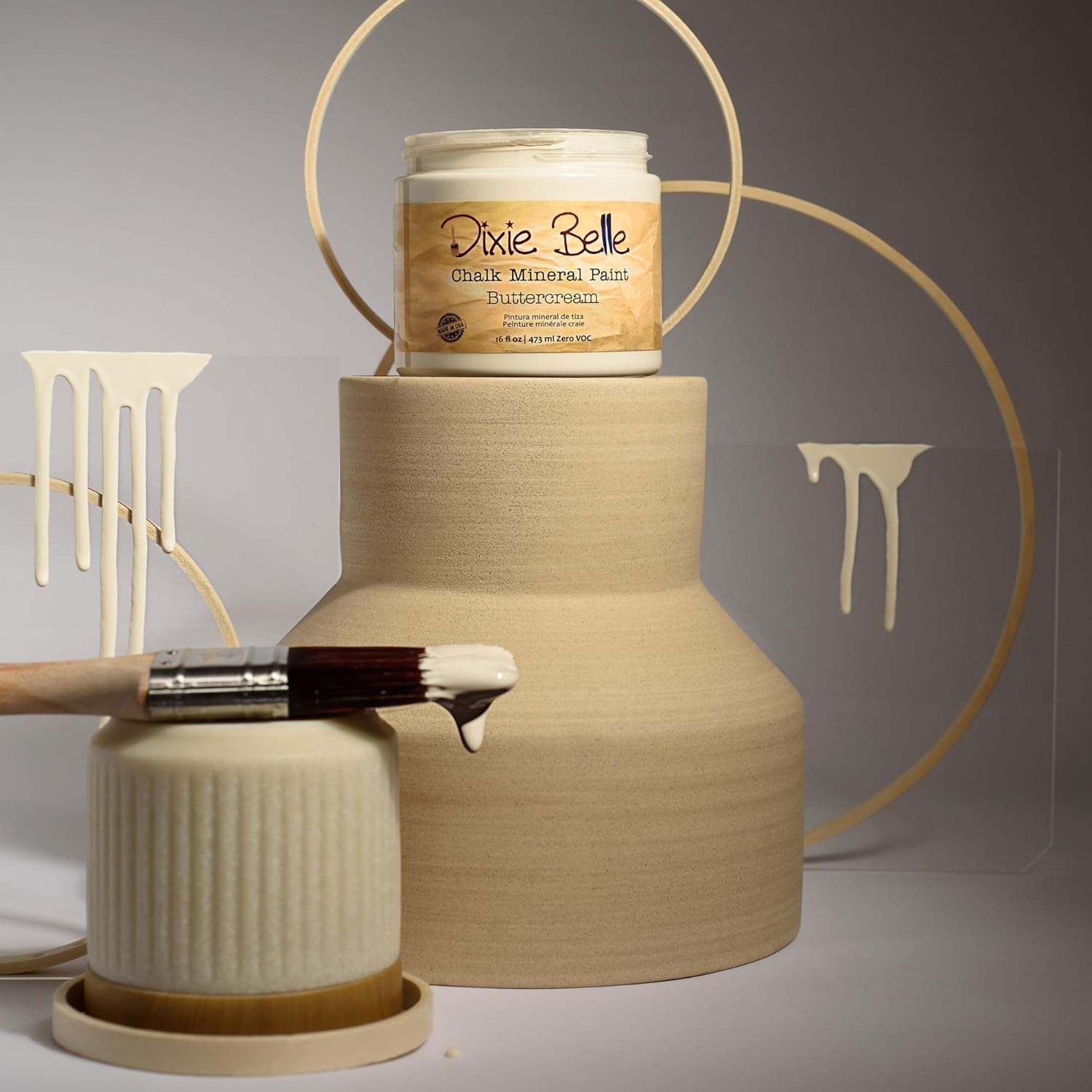 Dixie Belle Paint Company Chalk Finish Furniture Paint - Buttercream (4oz) - Matte Creamy White Chic Chalk Mineral DIY Furniture Paint