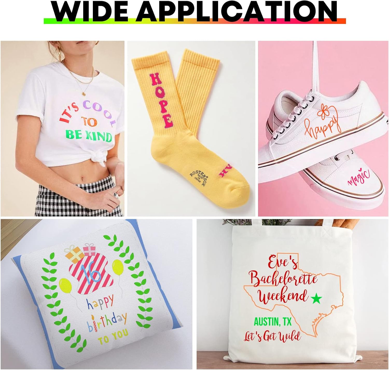 - 【USE WIDELY & SAVE TO WEAR】Your shirt, tote bags, sportswear, aprons, hat and pillow, which use our white htv, make you stand out from the crowd. Heat transfer vinyl is suitable for athletic mesh fabrics, Cotton, polyester and cotton blend, lycra/spandex, textiles etc. Our htv vinyl materials are SGS certified and are safe to wear