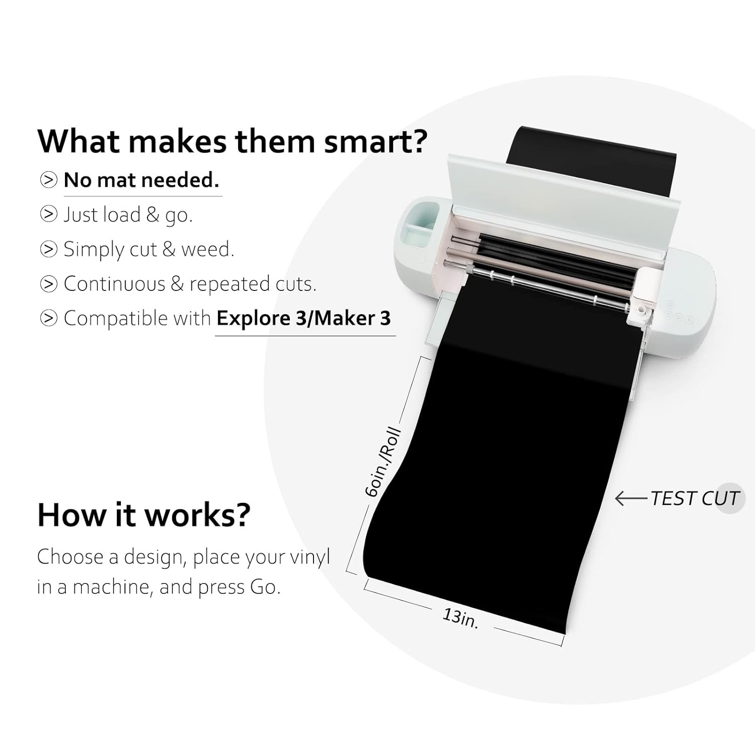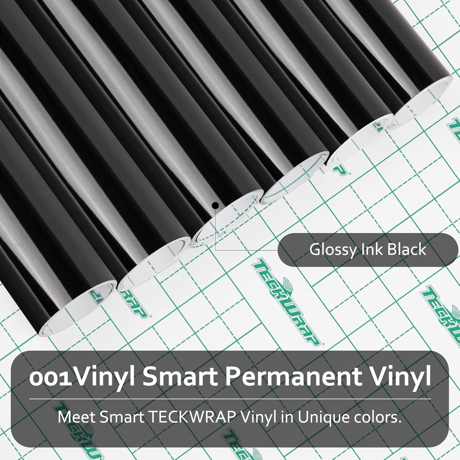 TECKWRAP 001 Smart Adhesive Vinyl Permanent,13in x 5ft, Vinyl for DIY Decal Projects, Compatible with Explore3/Maker3, Glossy Ink Black