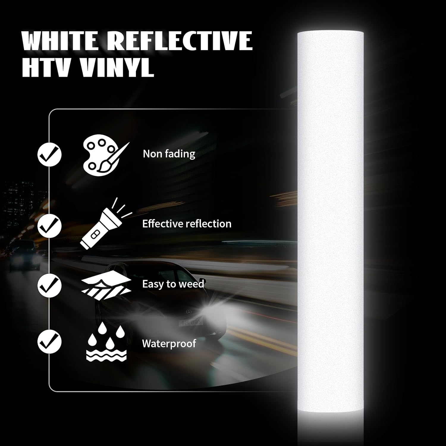 - Wide Application: White reflective vinyl heat transfer works best on cotton, polyester and cotton-polyester materials. You can personalize your custom t-shirts, canvas bags, hats, aprons, pants, coats and more with this vinyl reflective iron! If reflective HTV heat transfer vinyl is used for night wear, it allows you to ensure visibility and safety while running, biking, or working as a driver, traffic police.