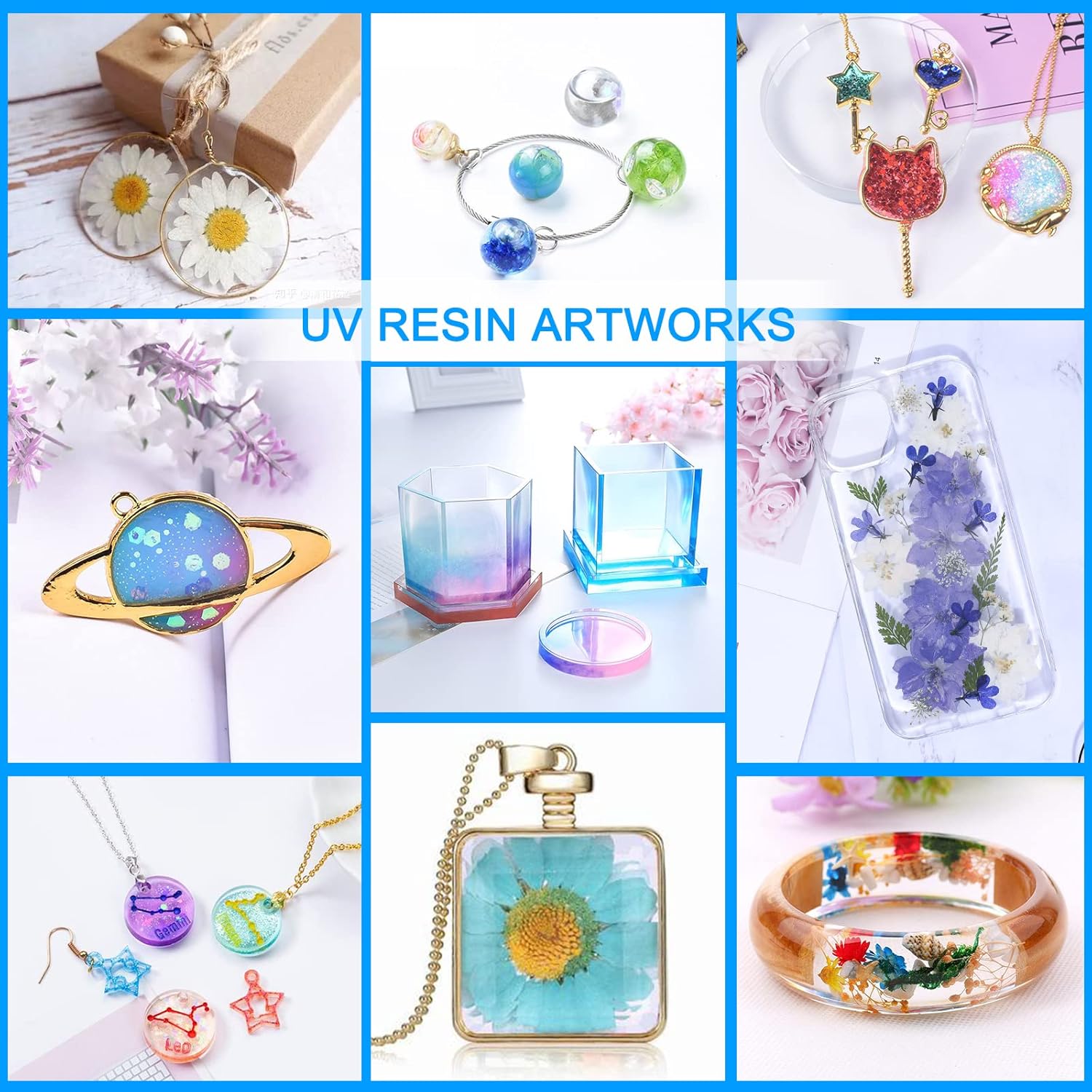- 💎【Widely Used】:UV epoxy resin can be used to make jewelry, crafts decorations, castings, coatings, etc. It can also be mixed with mica powder, colorants, glitter, sequins, to create more brilliant colors.