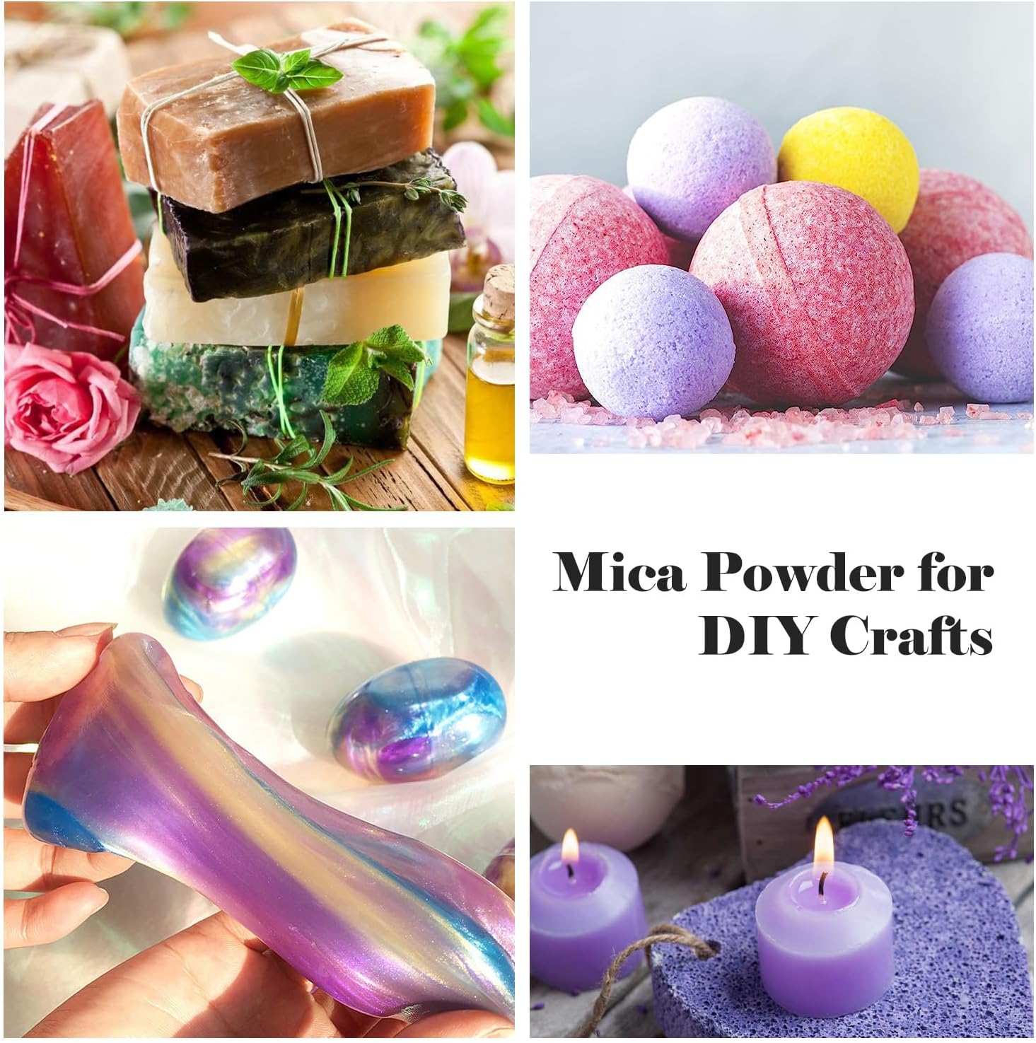- Multi Purpose : Our pigment powder will give a glitter and pearlescent look to your handmade products.Perfect for epoxy resin, car freshies, soap making, candle making, bath bombs, lip gloss,art sets, acrylic and slime, nail polish and even makeup!