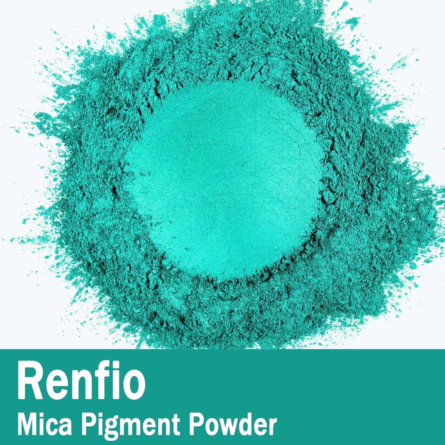 Renfio 100g Mica Powder Pigment, Metallic Natural Dye Mineral Pearl Shimmer Epoxy Resin Dye for Painting Soap Making Slime Bath Bombs 3.5 Oz - Turquoise