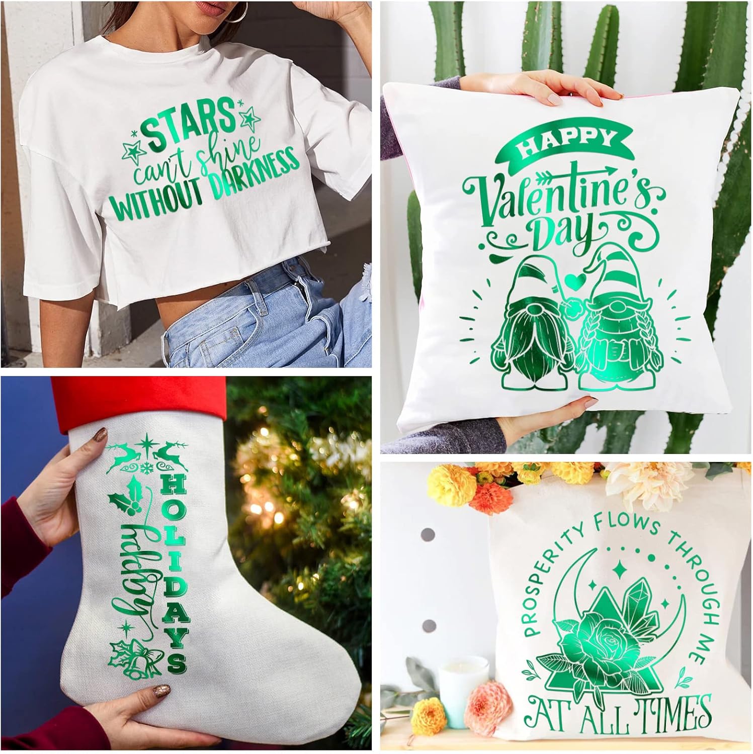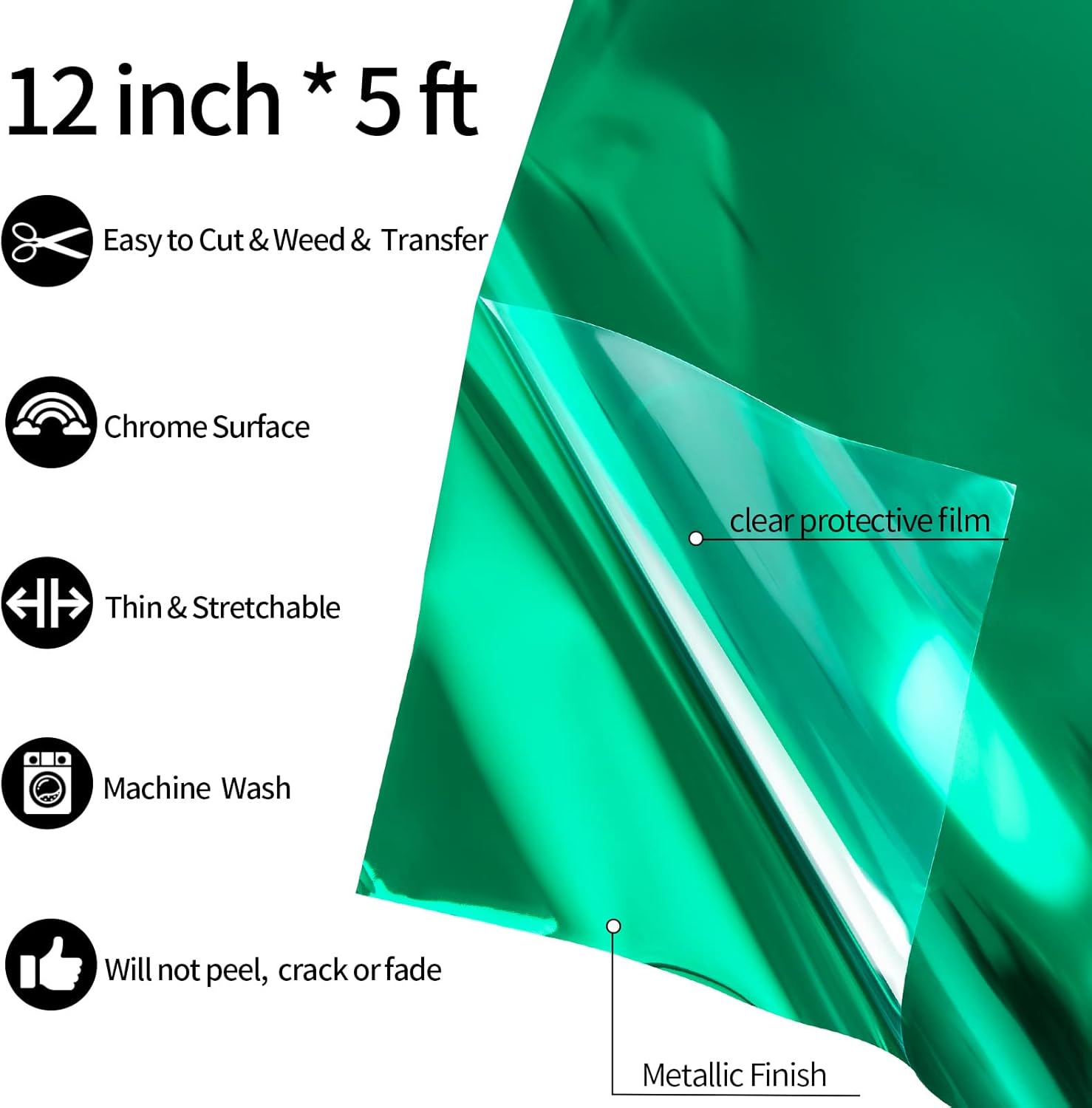 VINYL FROG Metallic Foil HTV Vinyl Roll 12" x5ft Green Chrome Heat Transfer Vinyl Iron on Vinyl Easy to Cut & Weed DIY Heat Press Design for T-Shirts