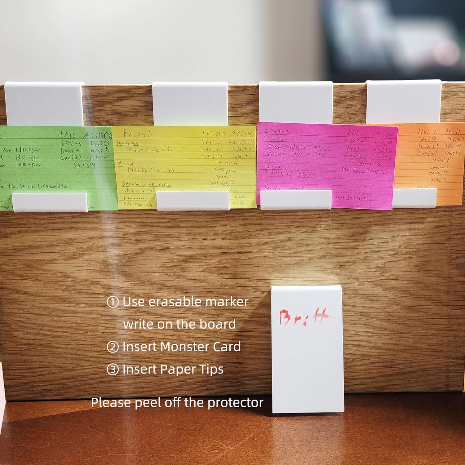 - Fits most DM screens: The tracker's acrylic material is flexible, so it can bend to fit DM screens that are 1-10mm thick. The card slot gaps are 6-10mm apart.