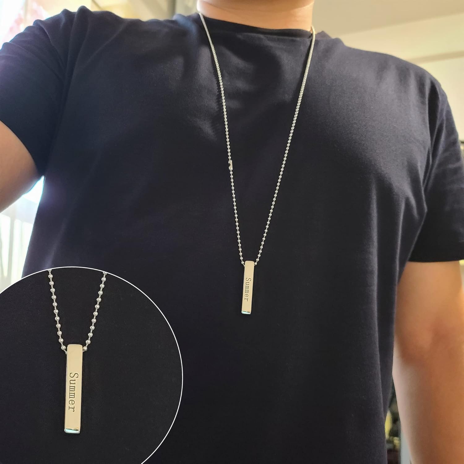 - Rectangle Bar are polished. The ball chain is long enough for you to wear.