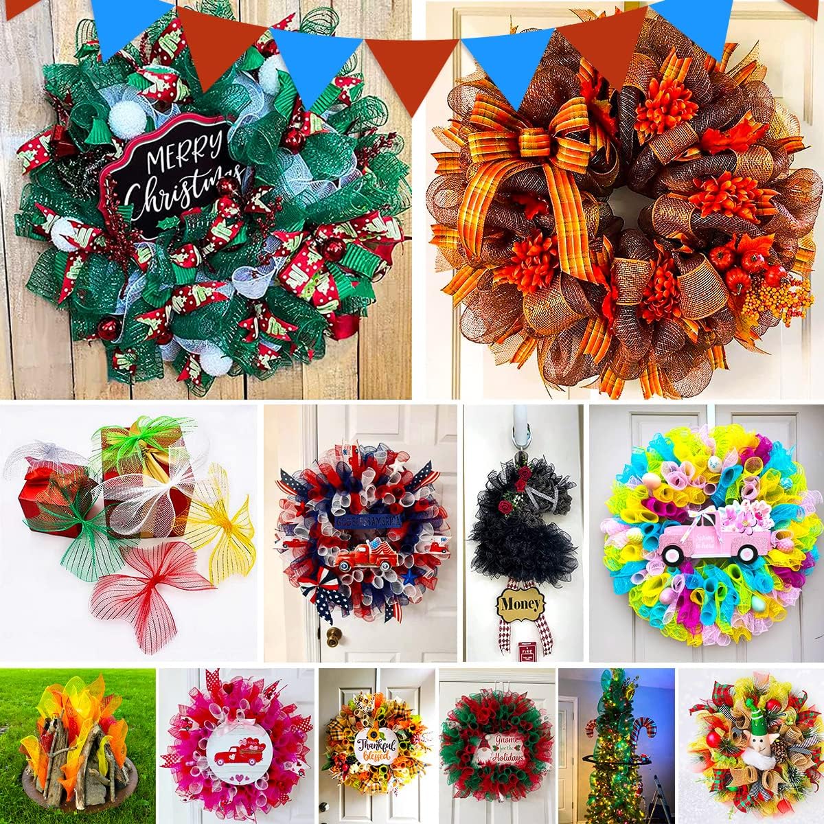 - Wide Usage: The deco mesh ribbon is lightweight and flexible, it is suitable for wreaths, swags, Halloween parties, Christmas trees, bows, gift baskets, decorating vases, pillars, archways, and banisters. Any creative or decorative venture you can think of.