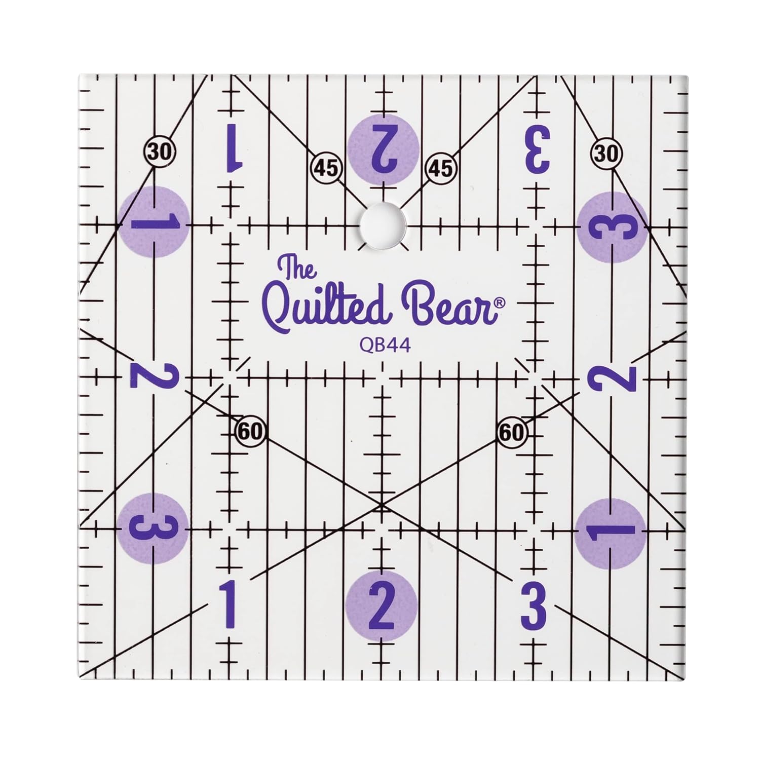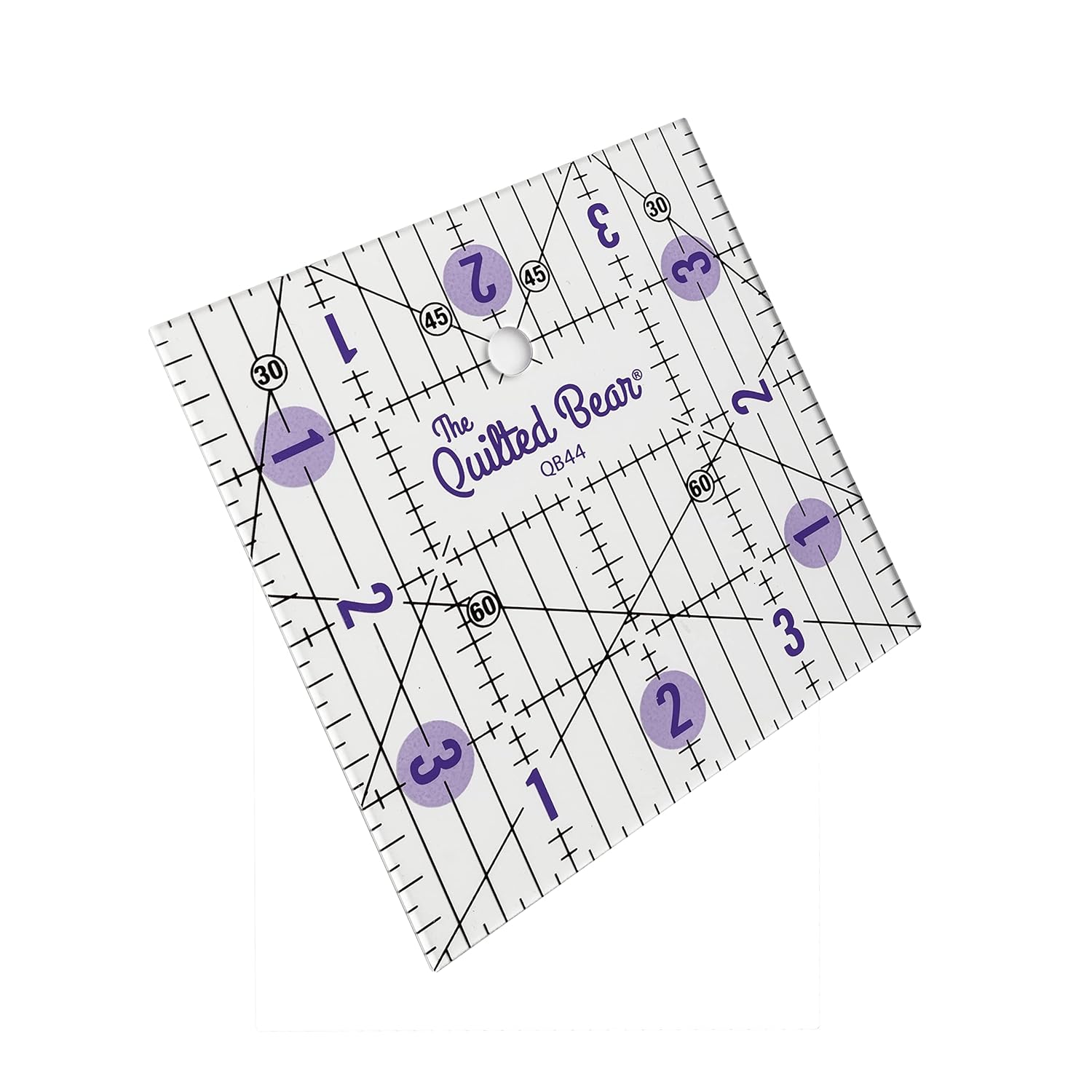 The Quilted Bear Quilting Rulers - Transparent Acrylic Non Slip Quilting, Patchwork & Sewing Ruler with Clear Black Lines & 30, 45 & 60 Degree Angles for Perfect Accuracy & Precision (4" x 4")