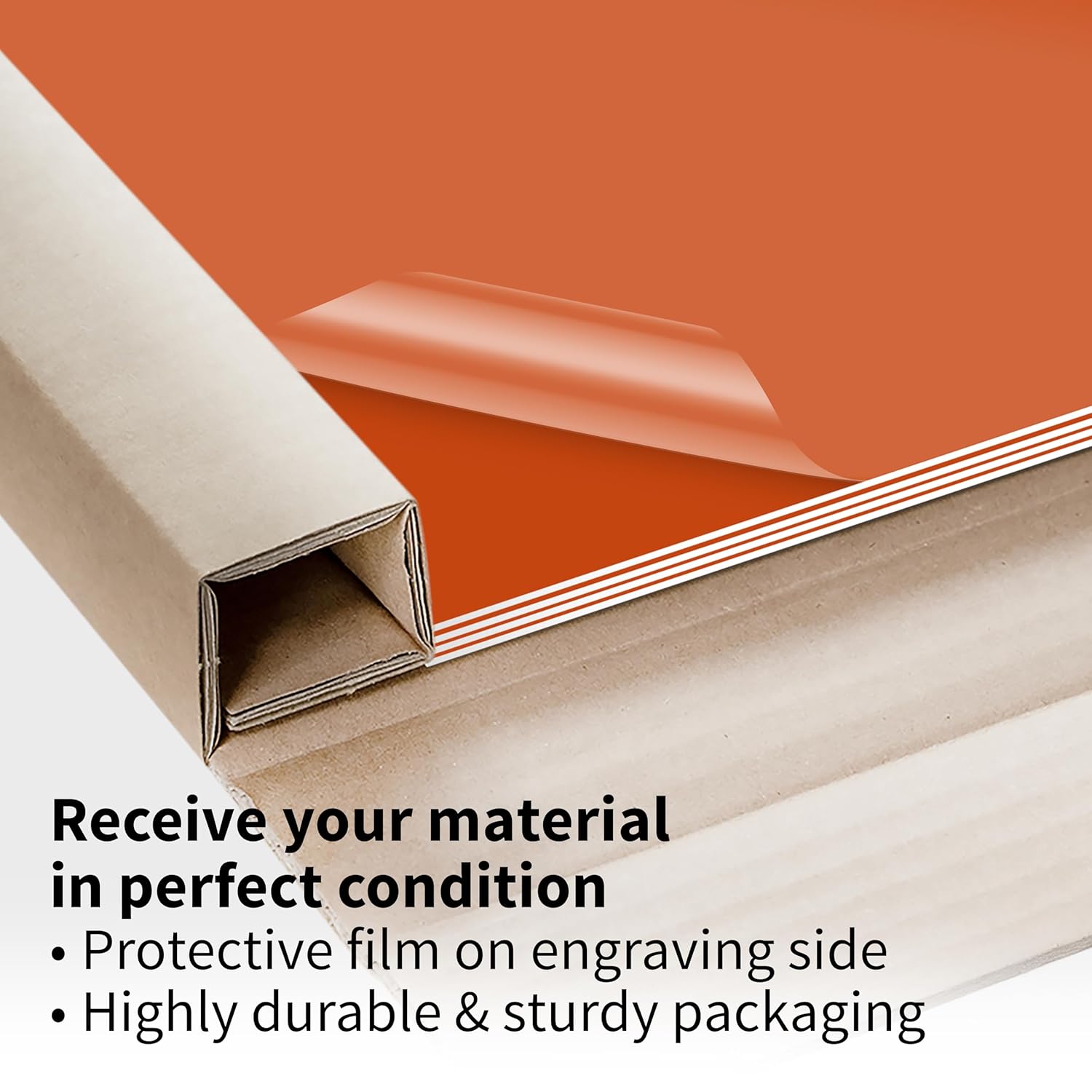 - Technical Data: Size: 12"x12" | Thickness: 0.06β (1/16", 1.6 mm) | Engraving depth: 0.003" (0.8 mm) | Top Color: Orange (RAL 3022) | Core Color: White (RAL 9016) | Transmittance: Opaque