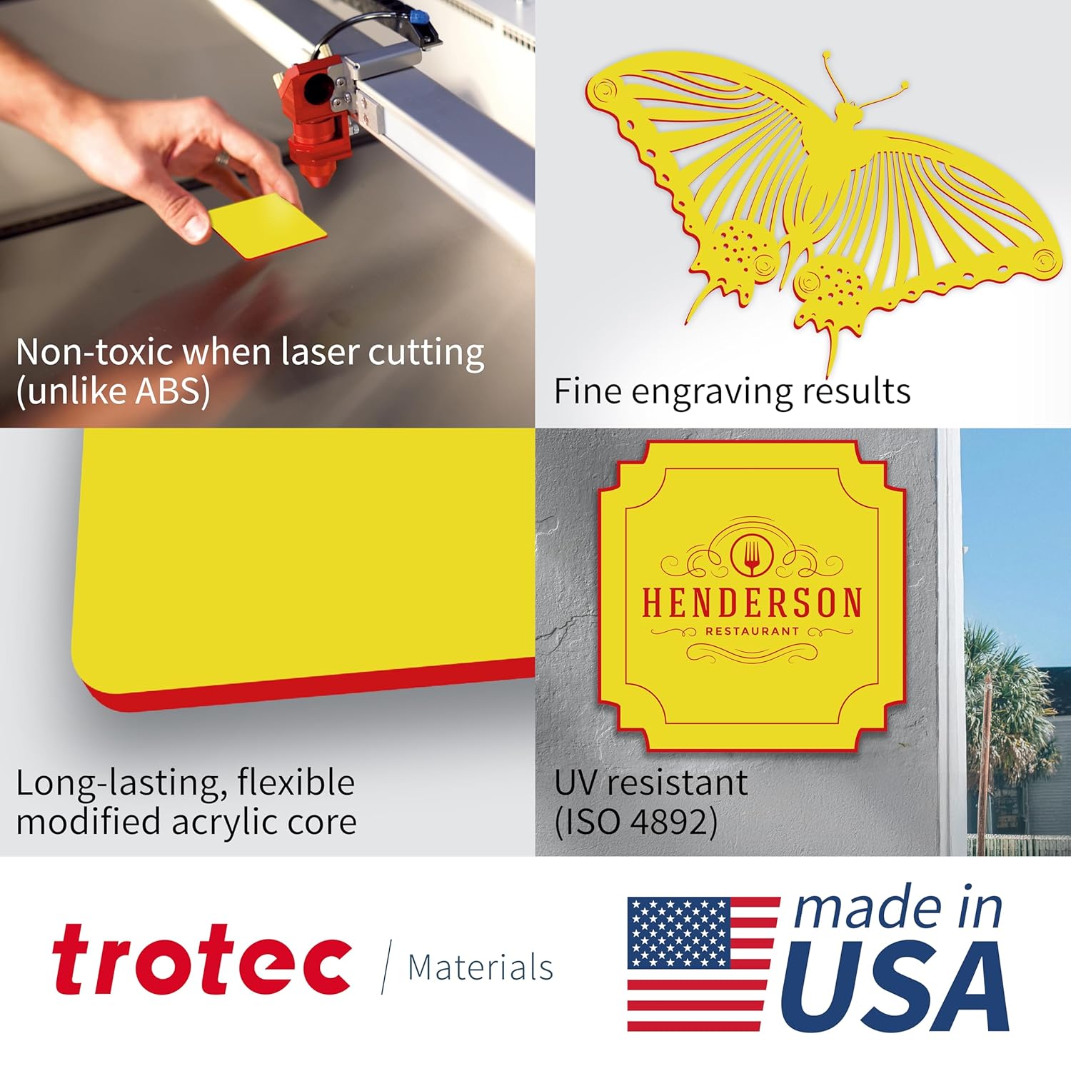 Trotec TroLase | 12"x24"x1/16", 4 Pcs | Yellow/Red | 2 Ply | Modified Acrylic | Laser Engraving Double Color Plastic Sheet | Engraving Blanks for Laser, Saw, Guillotine | Made in USA